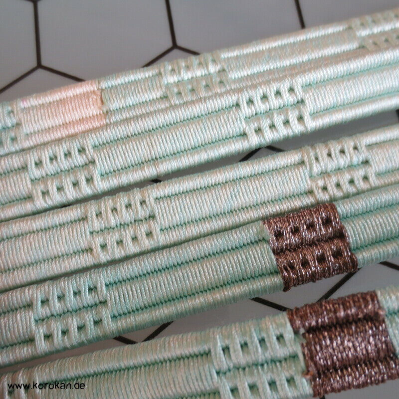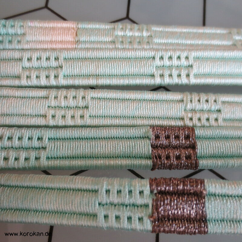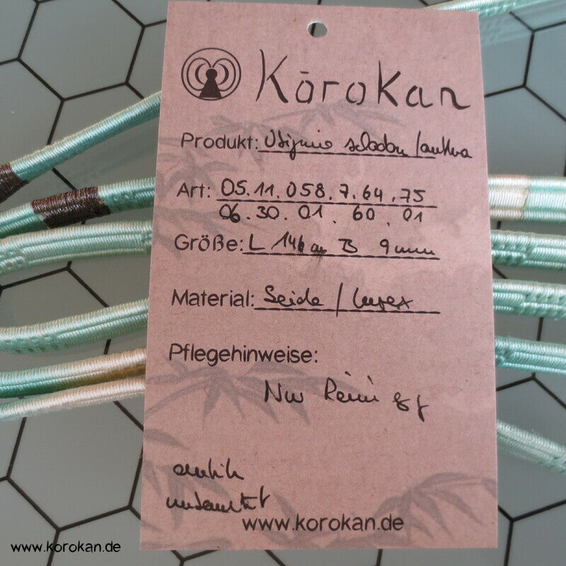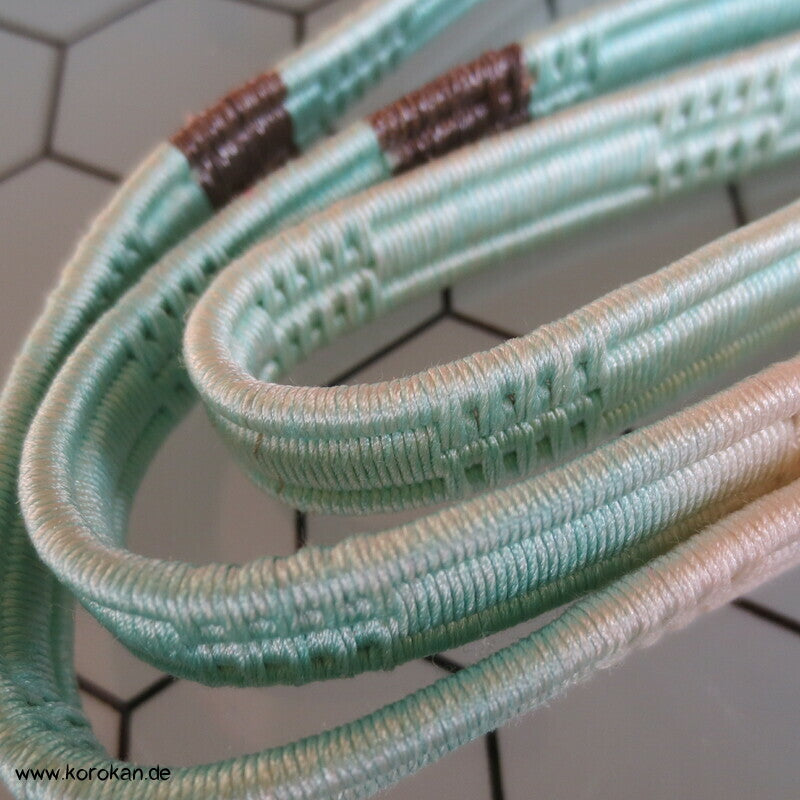 Vintage flacher Obijime natur silber mit jade Obijime, Seide / Lurex