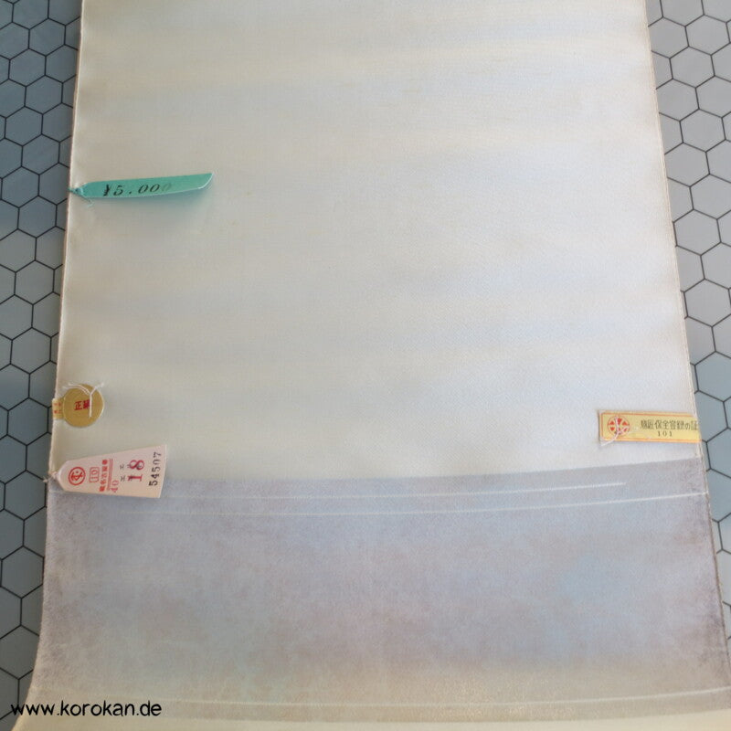 Vintage unbenutzer Tanmono für einen Obi, volle Stoffrolle Seidenjacquard / -brokat in kiesel glänzend mit Mohnblumen für Nagoya