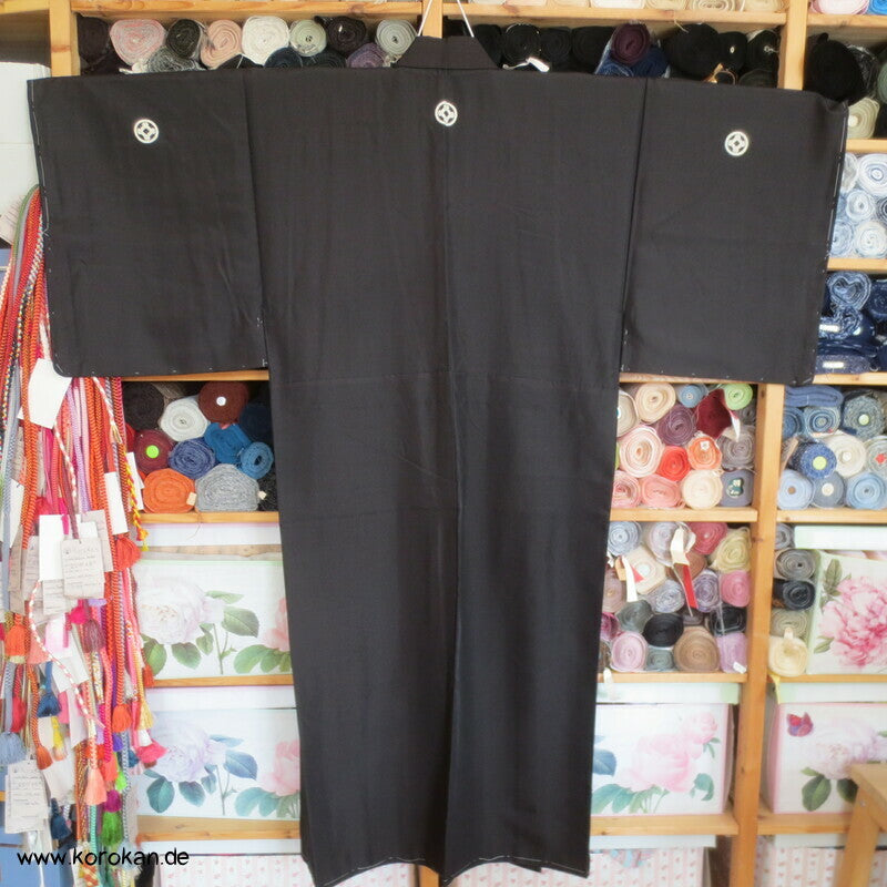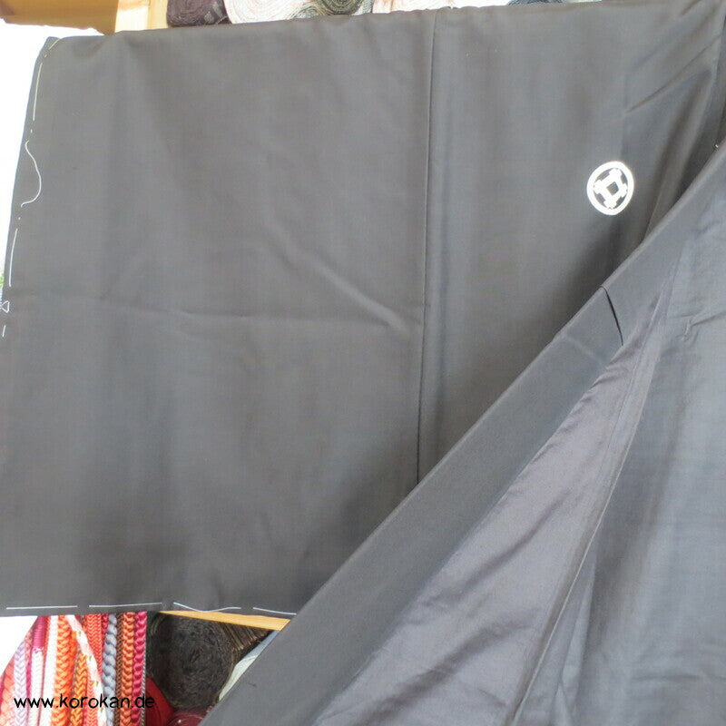 Vintage Männer Honan Seiden schwarzer formeller Kimono, mit 5 Mon, Futter schwarze Seide, sehr fein