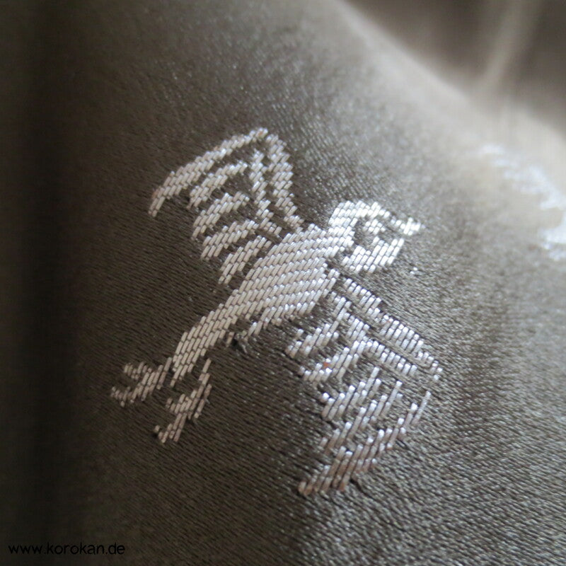 Montsuki Ensemble, 5 Pinienwald Mon, gewebtes Bildfutter im Haori, Seide