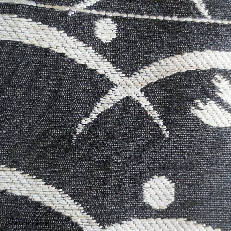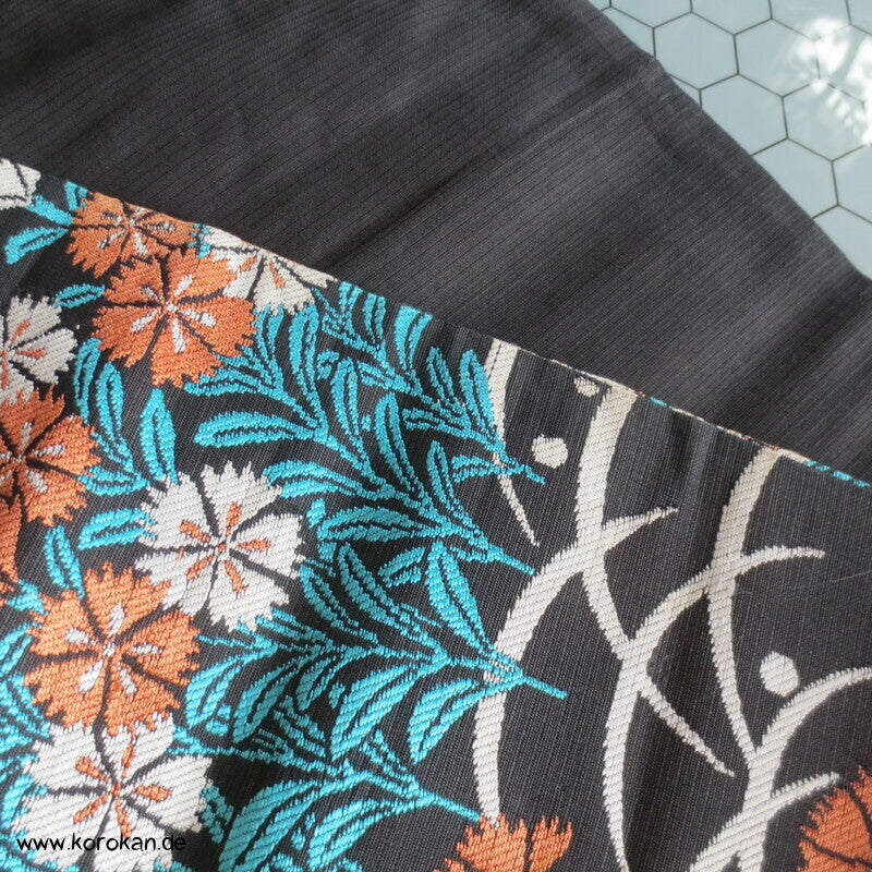 schwarzer grob gewebter Seiden Tsumugi mit Grasnelken und liegendem Gras, zweiteilig