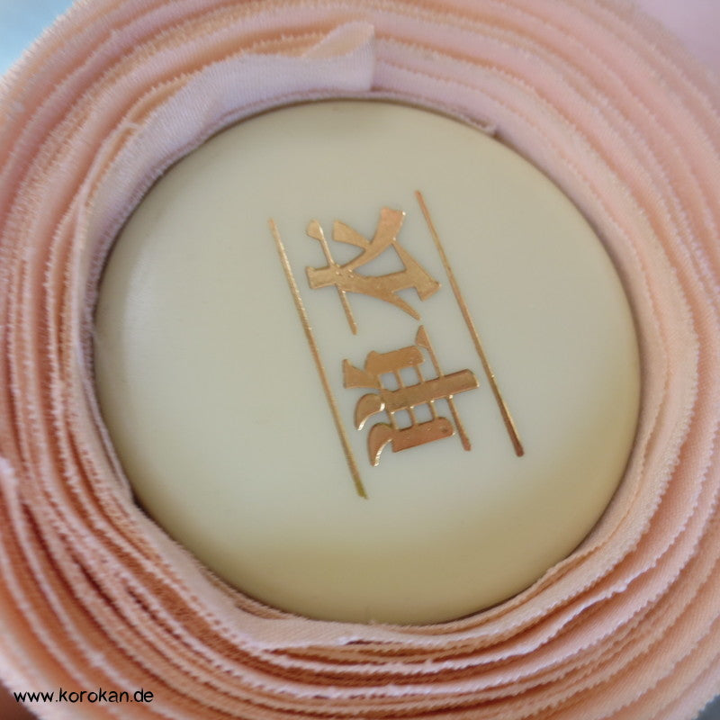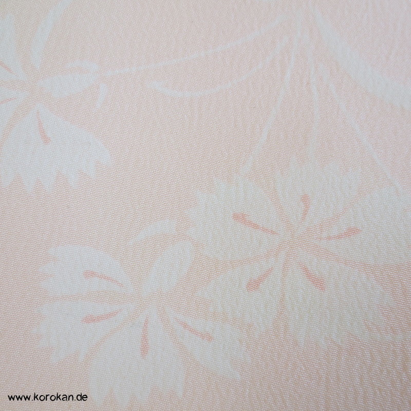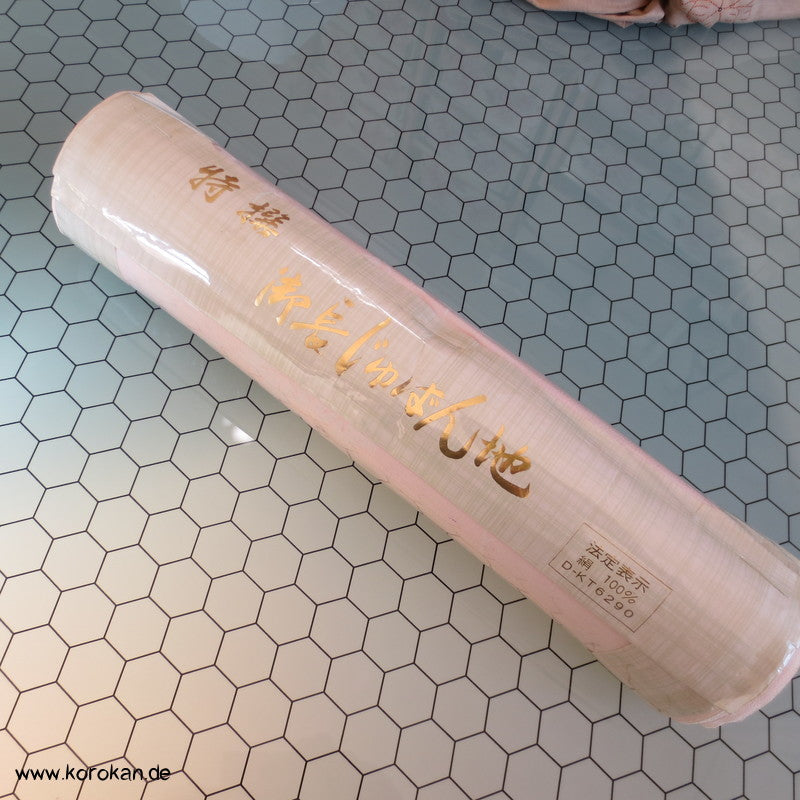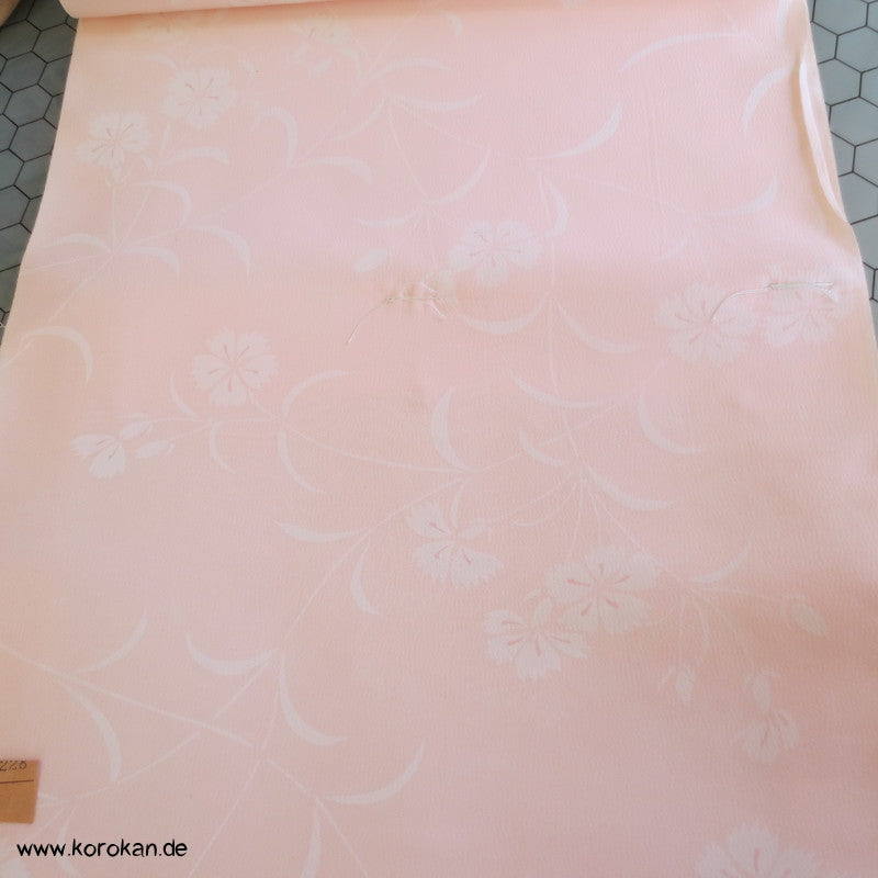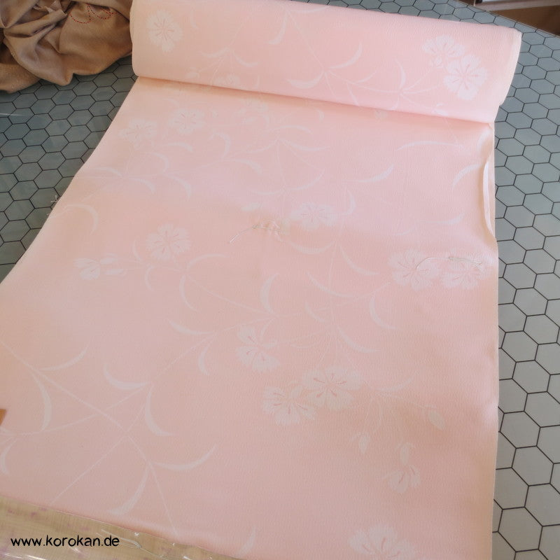 japanische Vintage unbenutzte originalgeheftete Tanmono Stoffrolle Seidencrepe helle Nadeshiko Blüten auf blassrosa - ein Juban Unter Kimono / Futter Material