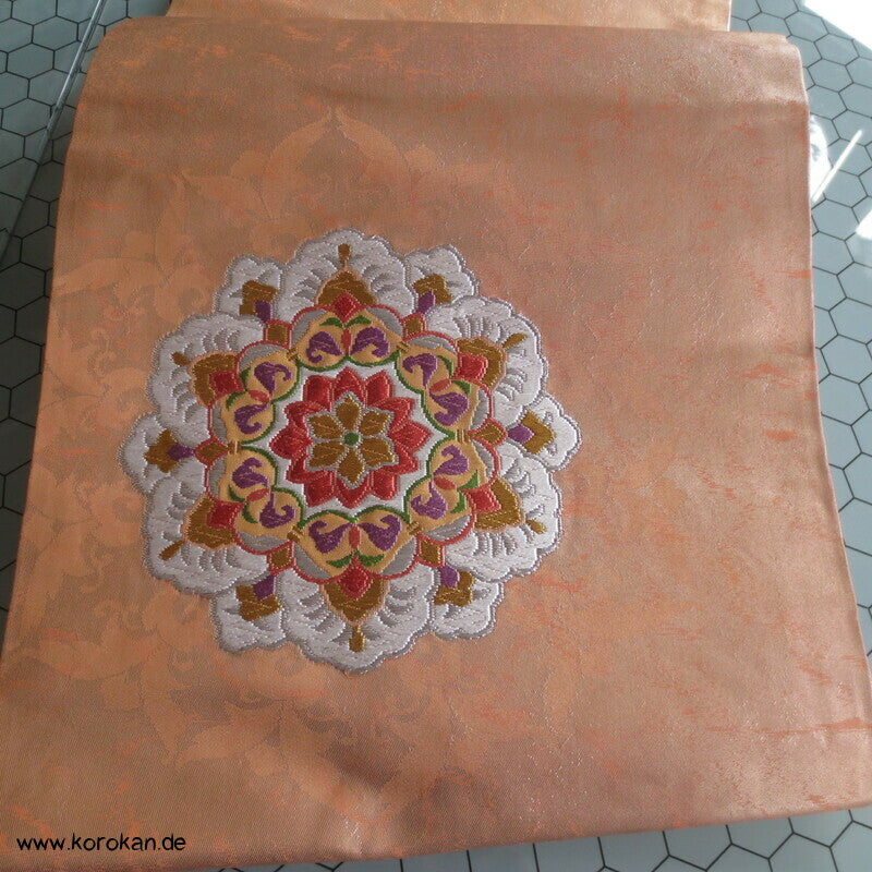 Vintage Seiden Nagoya Obi Ornament auf goldgelborange