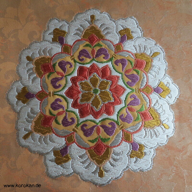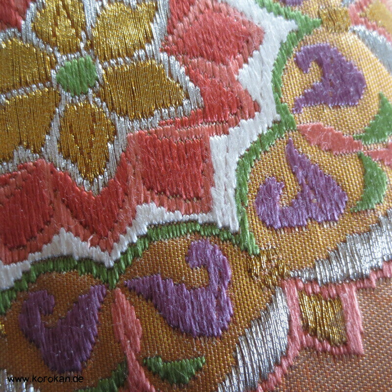 Nagoya Obi Seidenbrokat Ornament auf goldorange