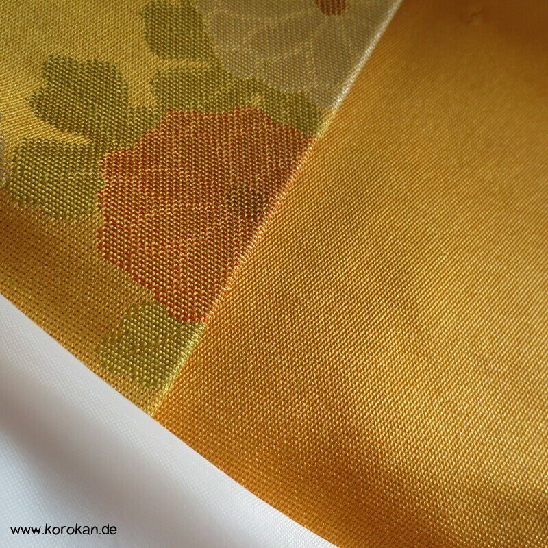 Nagoya Obi Seidenbrokat, goldgelbe Chrysanthemen