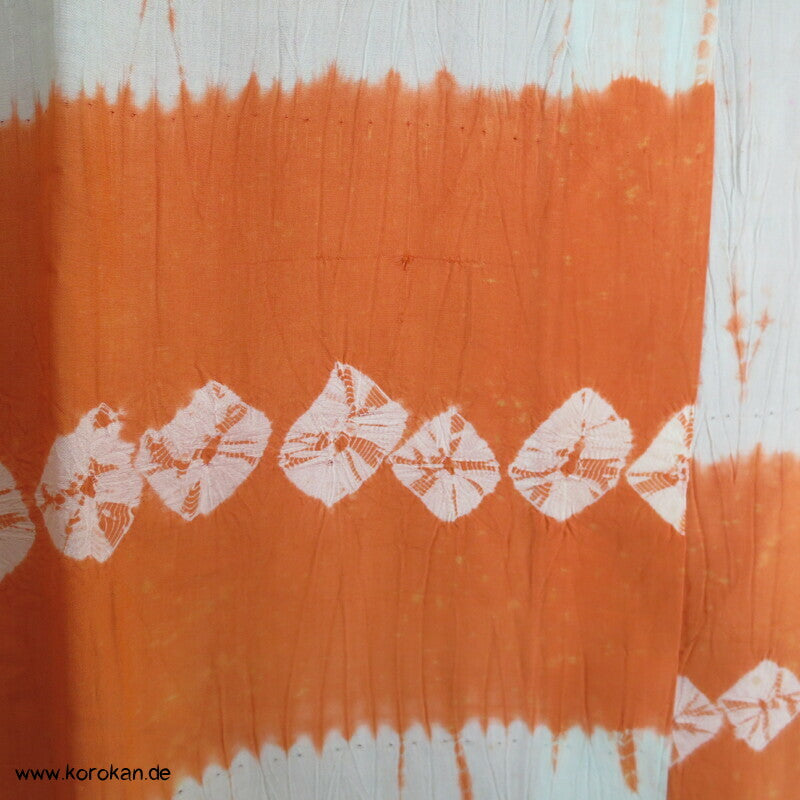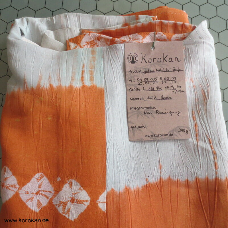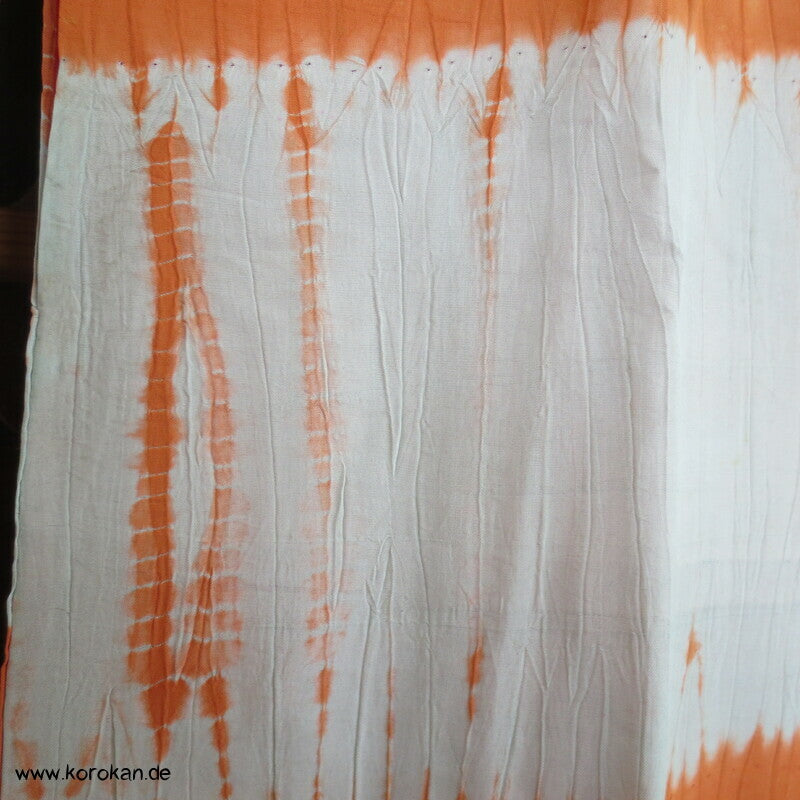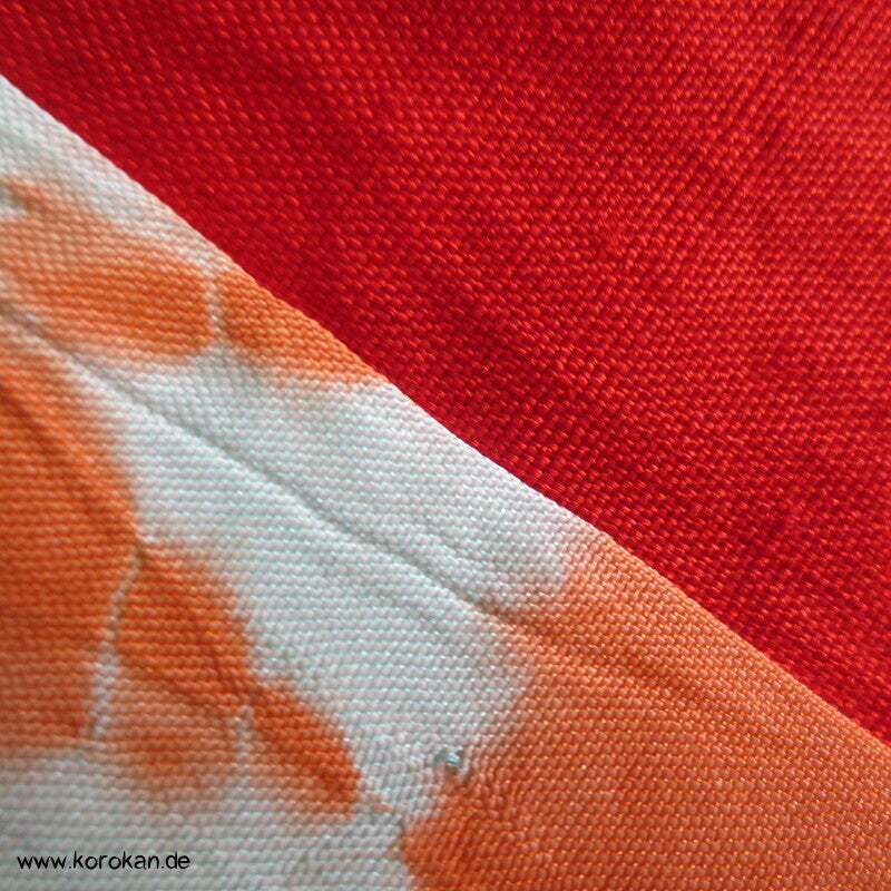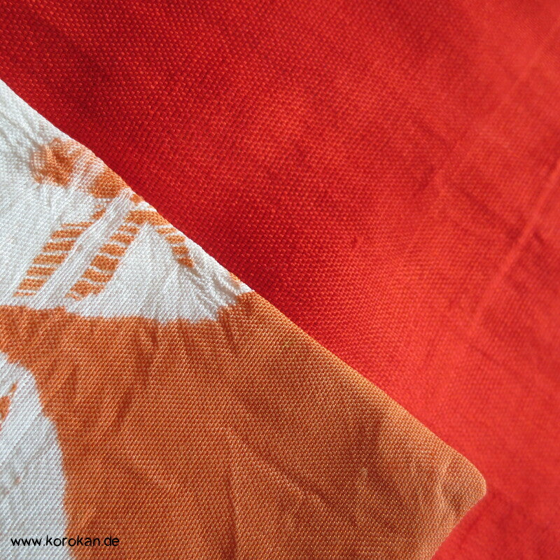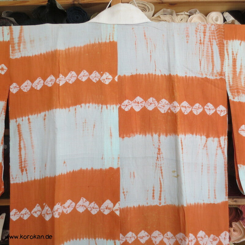 antiker Juban Unter Kimono Seidendamast mit Näh Shibori Streifen hellblau mandarine, voll gefüttert auf rote Seide