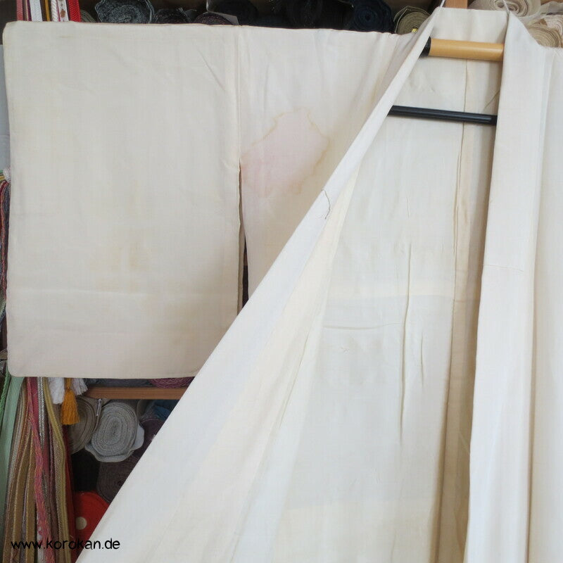 Vintage naturweißer Nakagi Zwischenlagen einfarbiger Seidencrepe Kimono