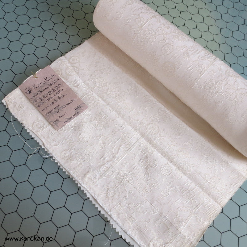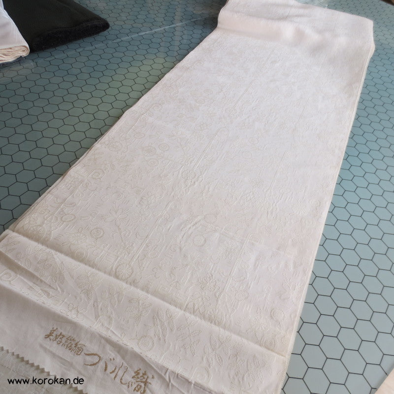 japanischer Vintage unbenutzter Kimono Brautkimono Seidendamast gewebte Muster, kleine Muster, reinnaturweiß