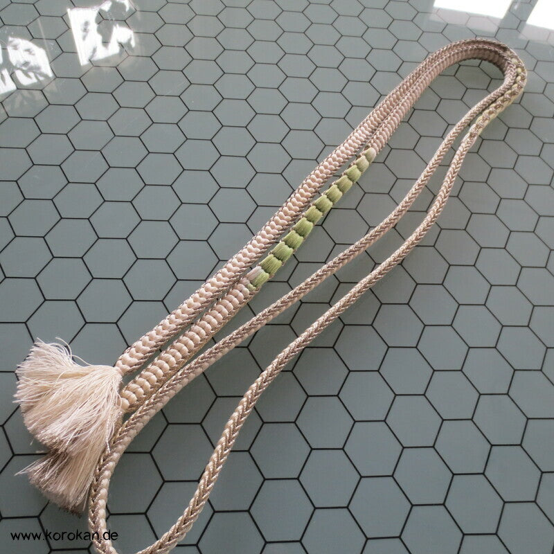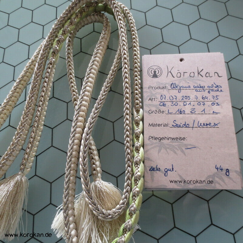 Vintage flacher Obijime natur silber mit jade Obijime, Seide / Lurex