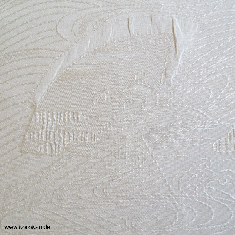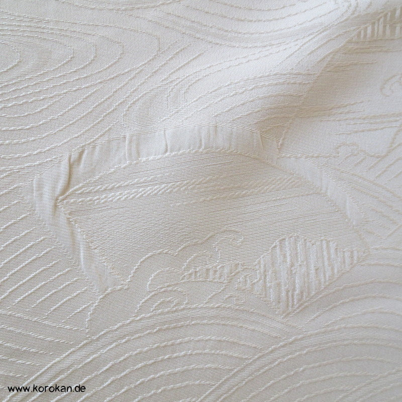 japanischer Vintage unbenutzter Kimono Brautkimono Seidendamast gewebte Fächer und Wellen Muster, kleine Muster, reinnaturweiß