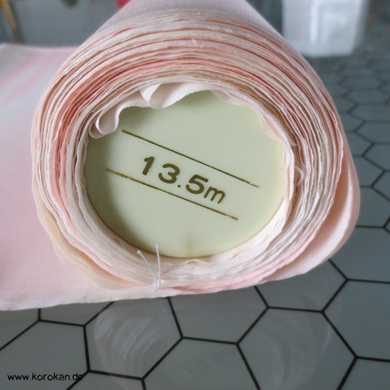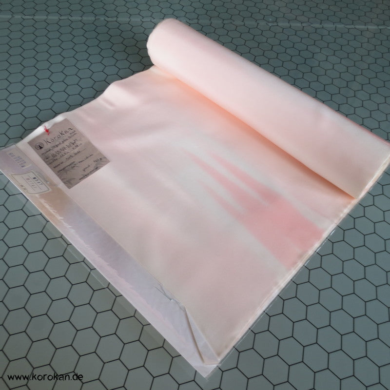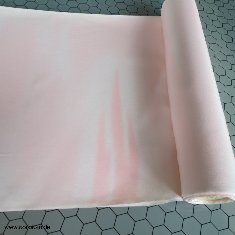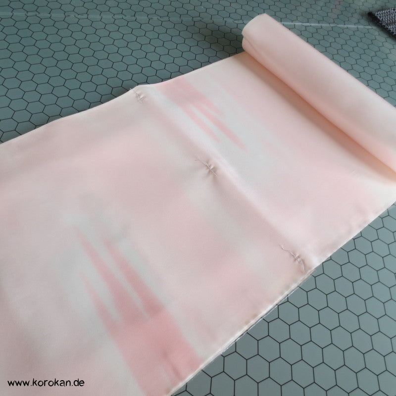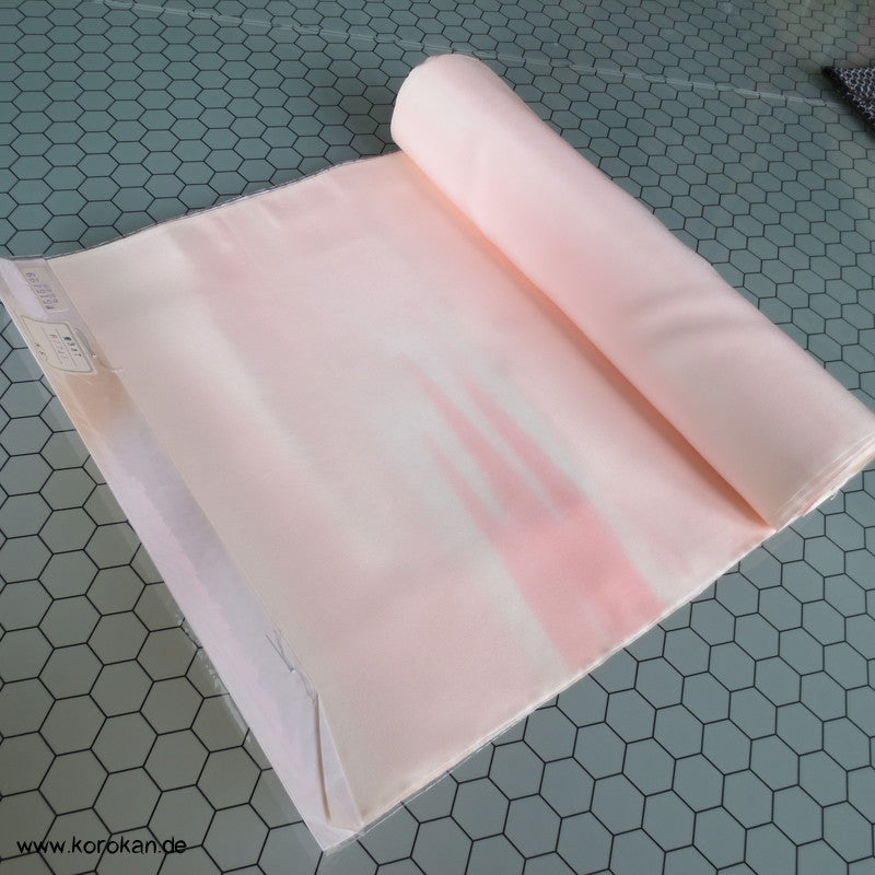 japanische Vintage unbenutzte Tanmono Stoffrolle Seidencrepe blassrosa mit weißem Nebel Bokashi Farbverlauf Druck - ein Juban Unter Kimono / Futter Material,