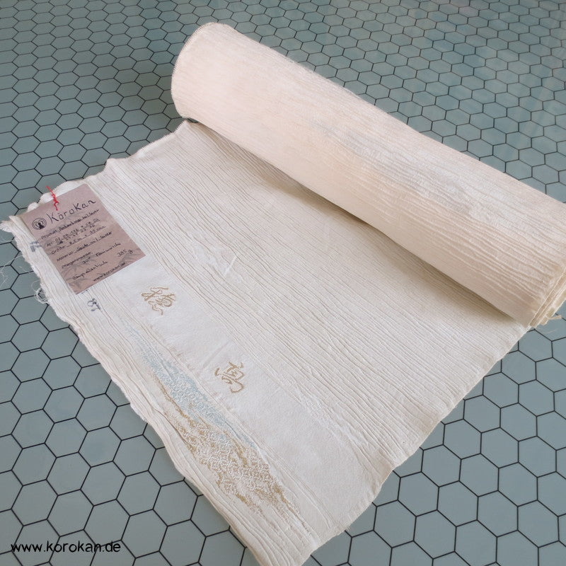 Vintage unbenutzte Kimono Stoffrolle Tanmono Seiden Brokat Jacquard Krepp mit Nebelschwaden auf natur