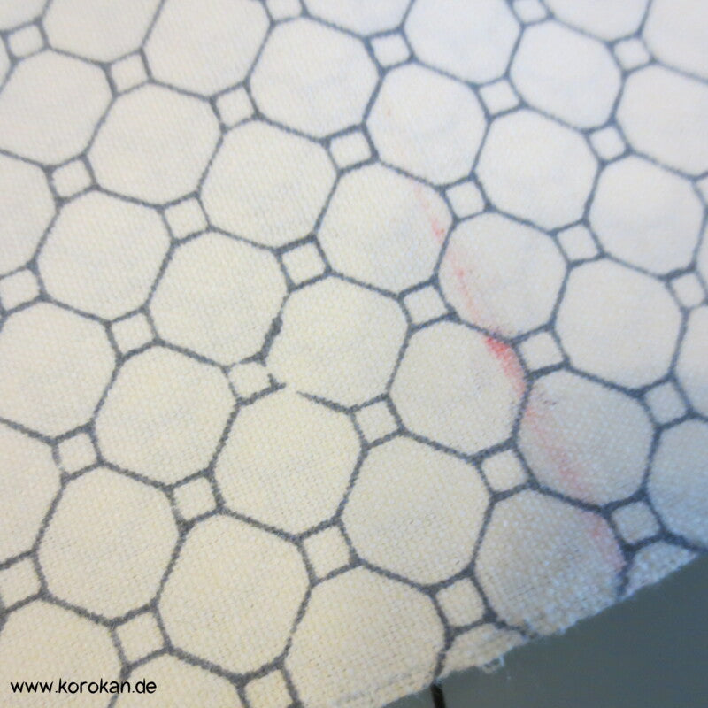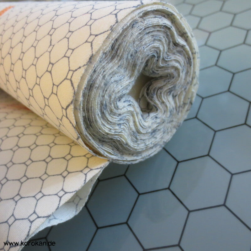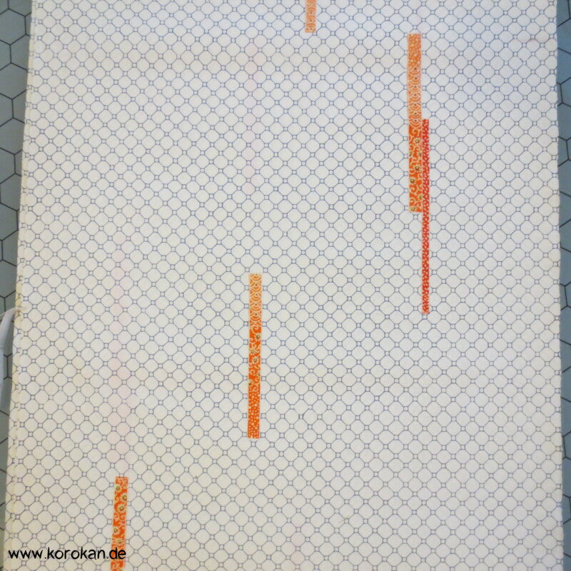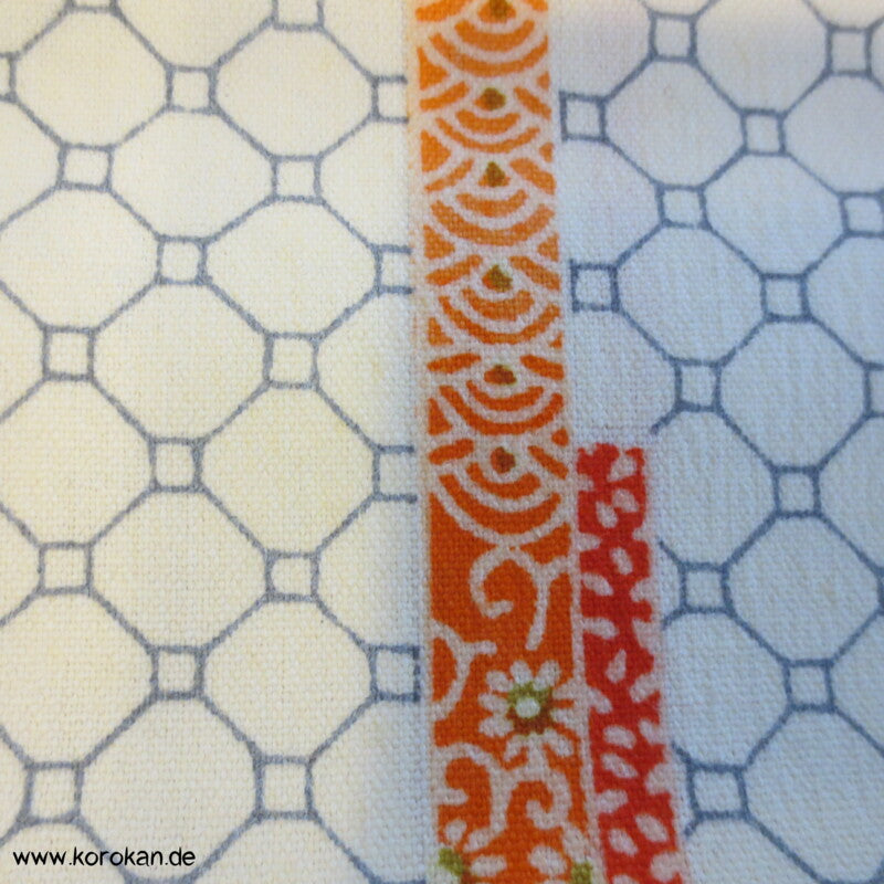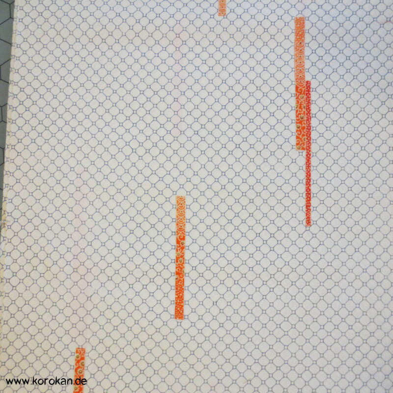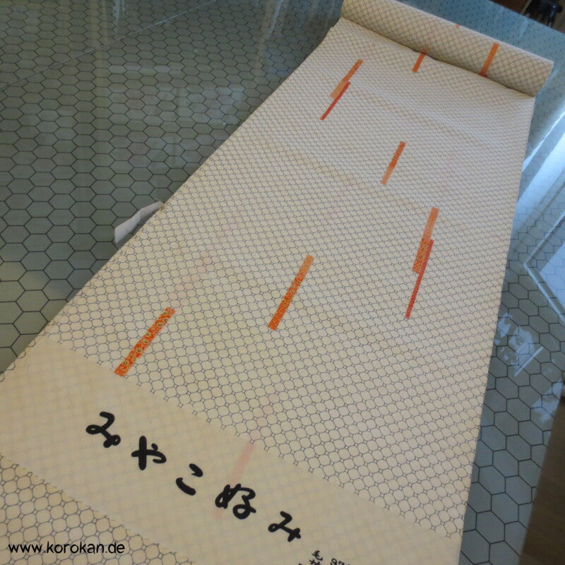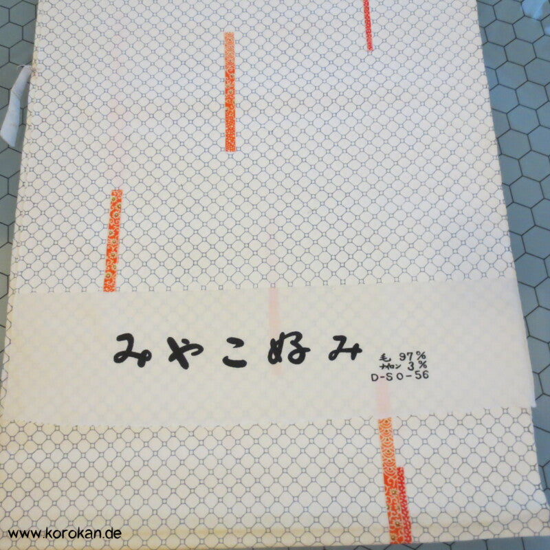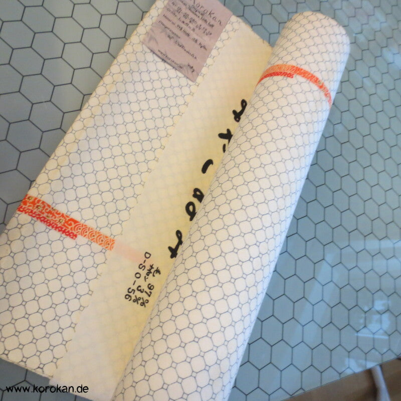 japanische Vintage unbenutzte originalgeheftete Stoffrolle Tanmono Wolle Netz mit darüberliegenden Tanzashi Musterstreifen auf natur