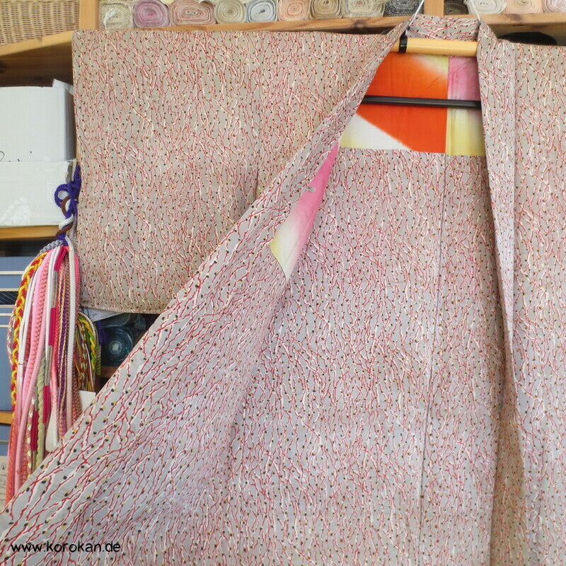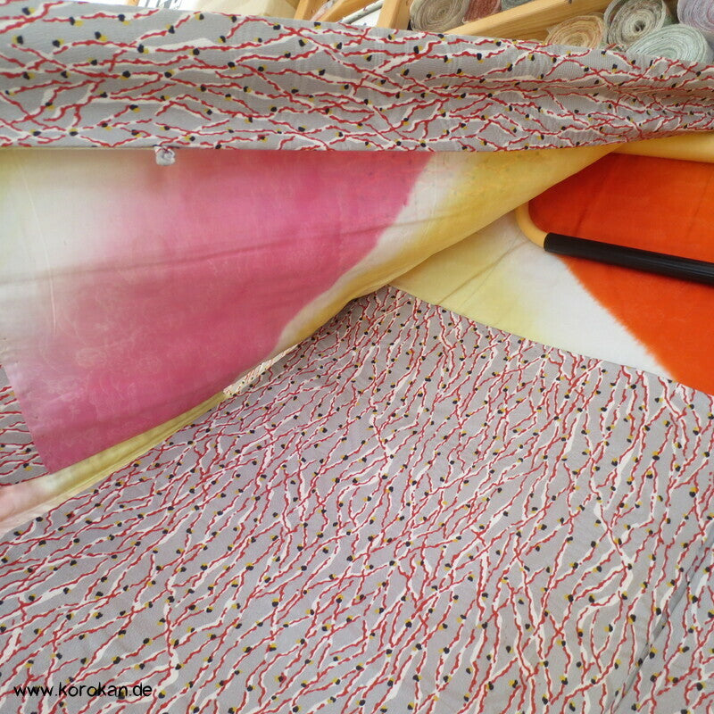 Vintage Haori Kimono Jacke Seidencrepe mit einem Neuronen Netz Druck, oberem Seidenfutter bunt bedruckt