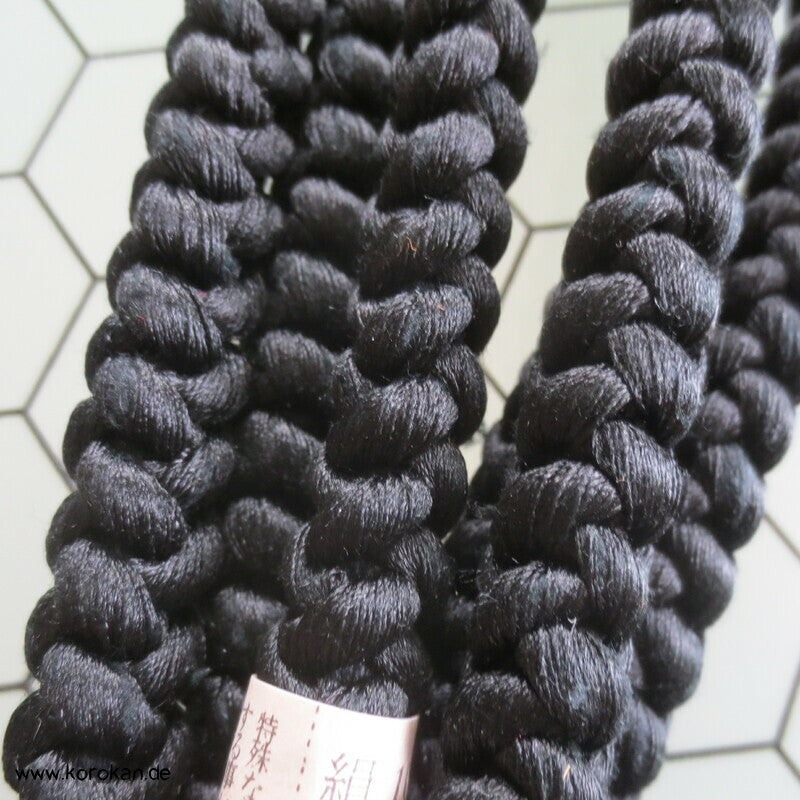 Vintage unbenutzter schwarzer Seiden Kordel Obijime
