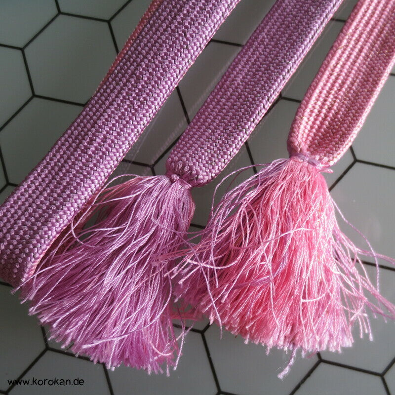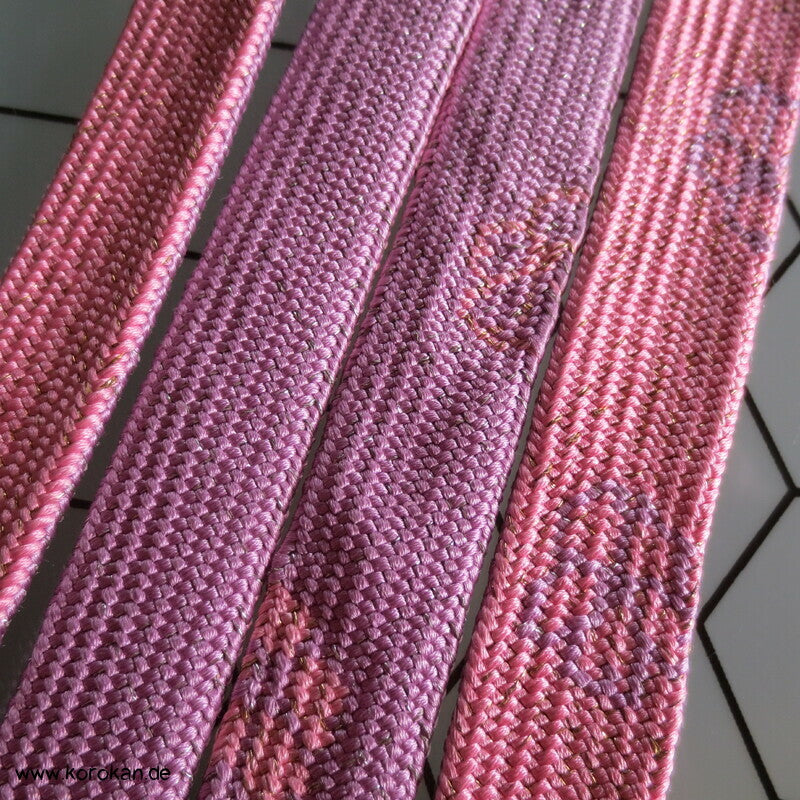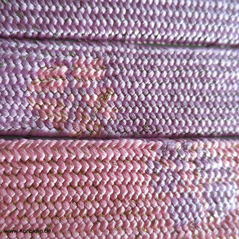 flacher Obijime mit Farbverlauf in hellviolett und wechselseitiger Flechtung mit gold.