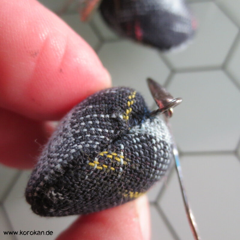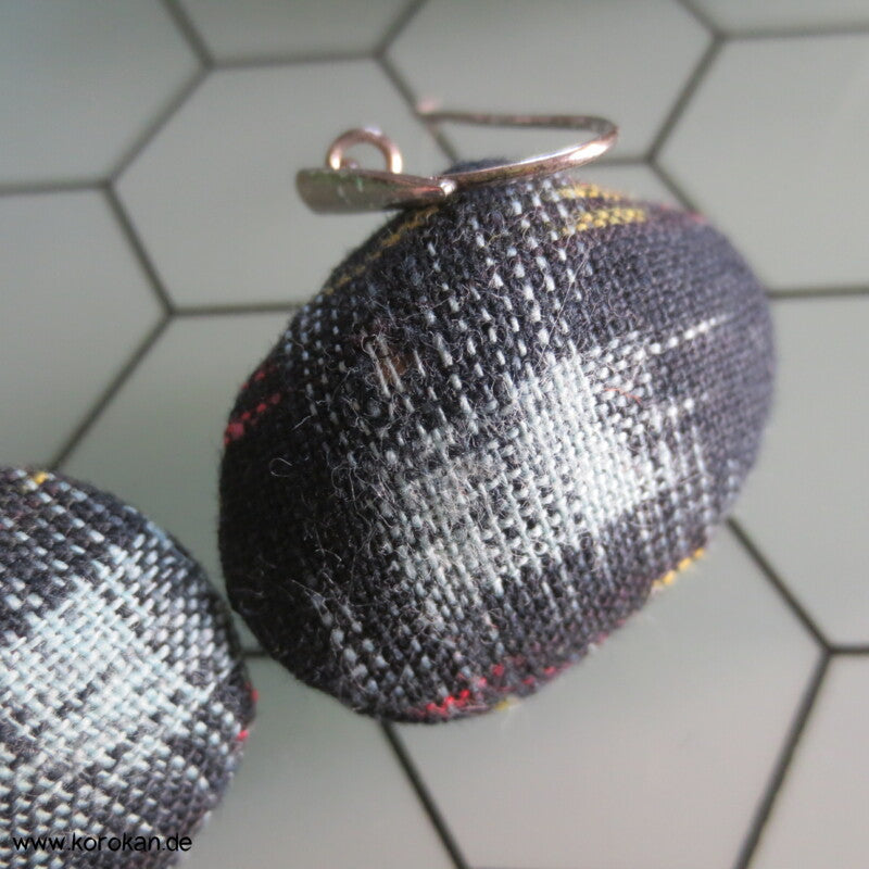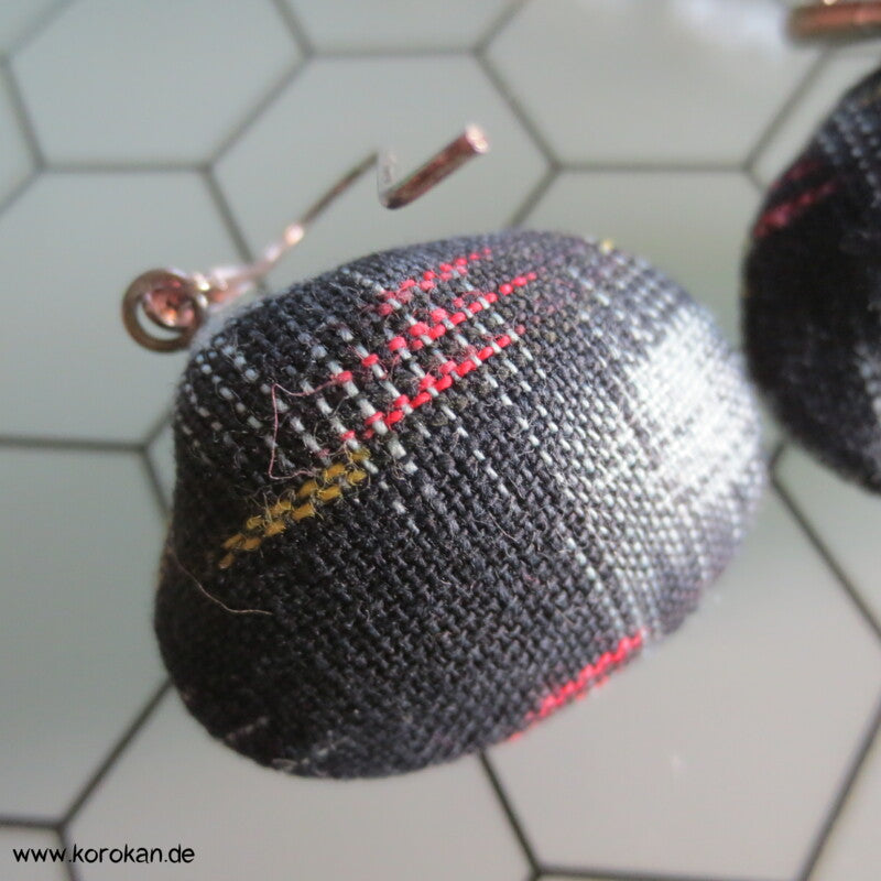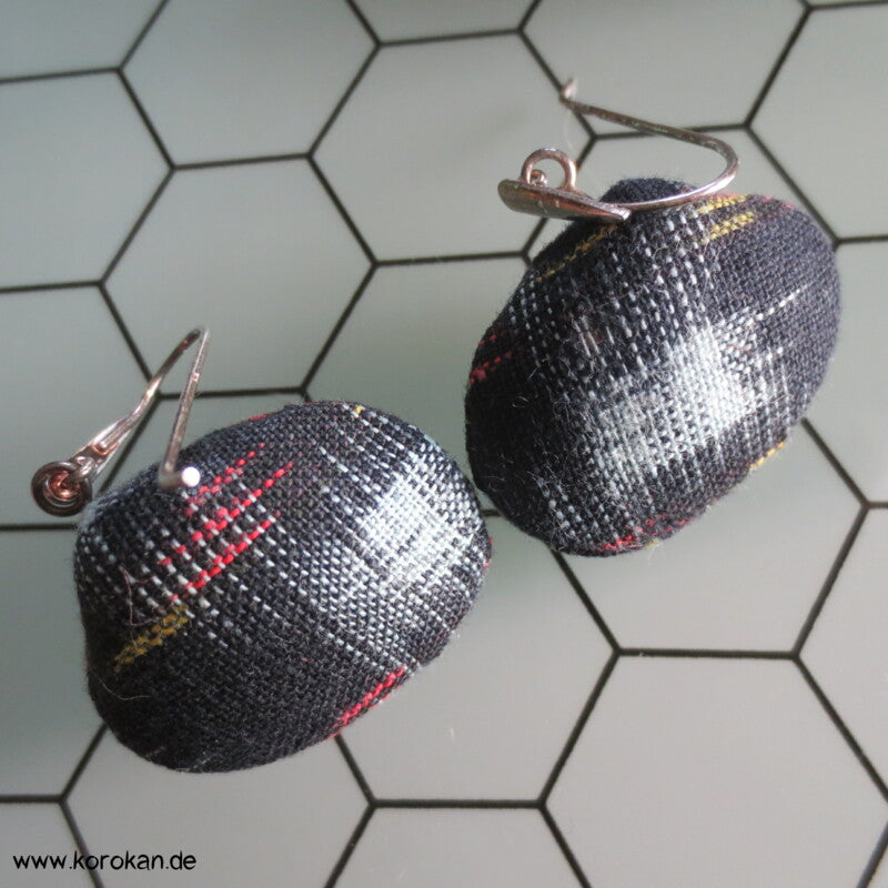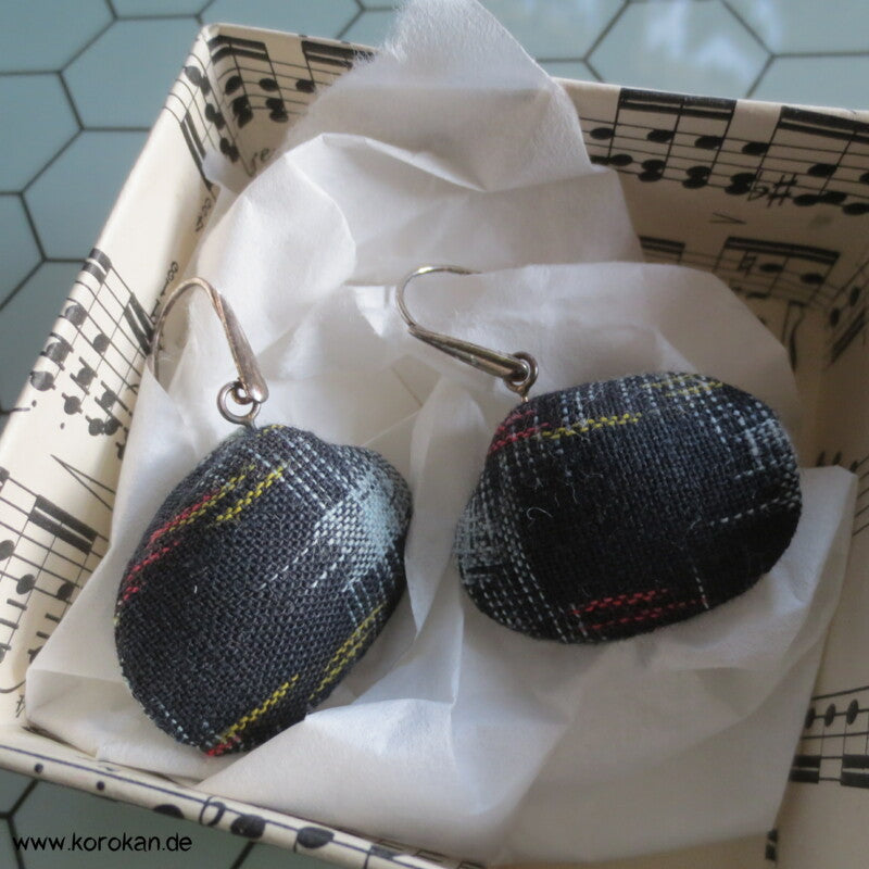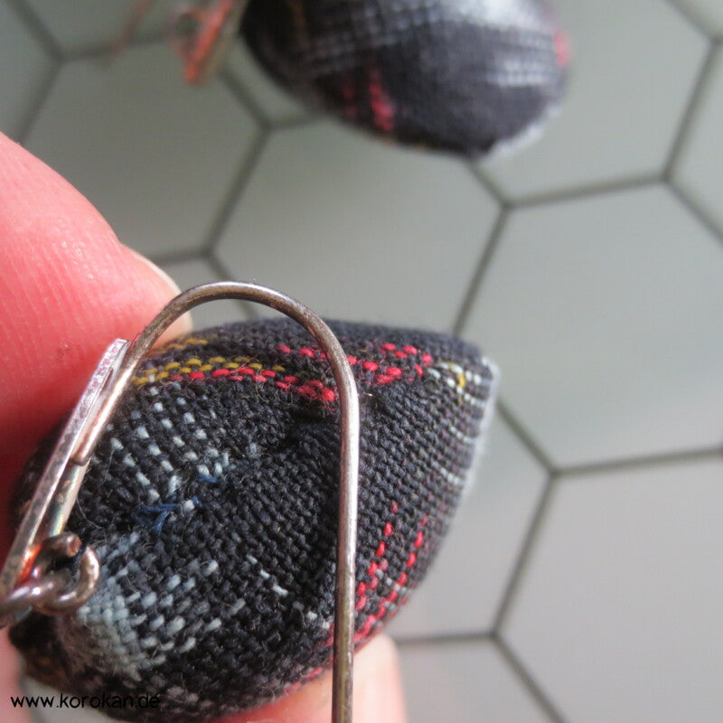 Ohrringe aus Kasuri Tsumugi Seiden Stoff auf Muscheln bezogen