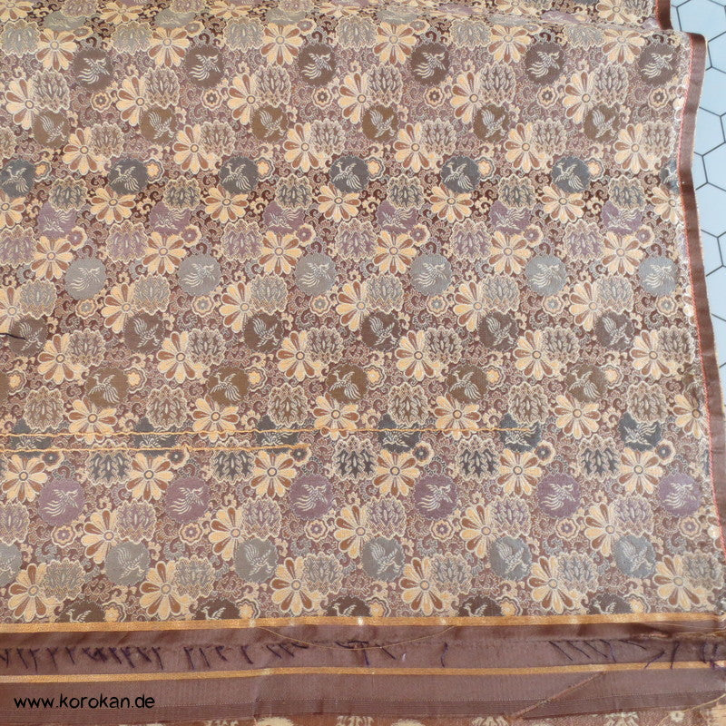 oliv / gold / schwarz Araihari Seidenbrokat Stoff für Maru Obi
