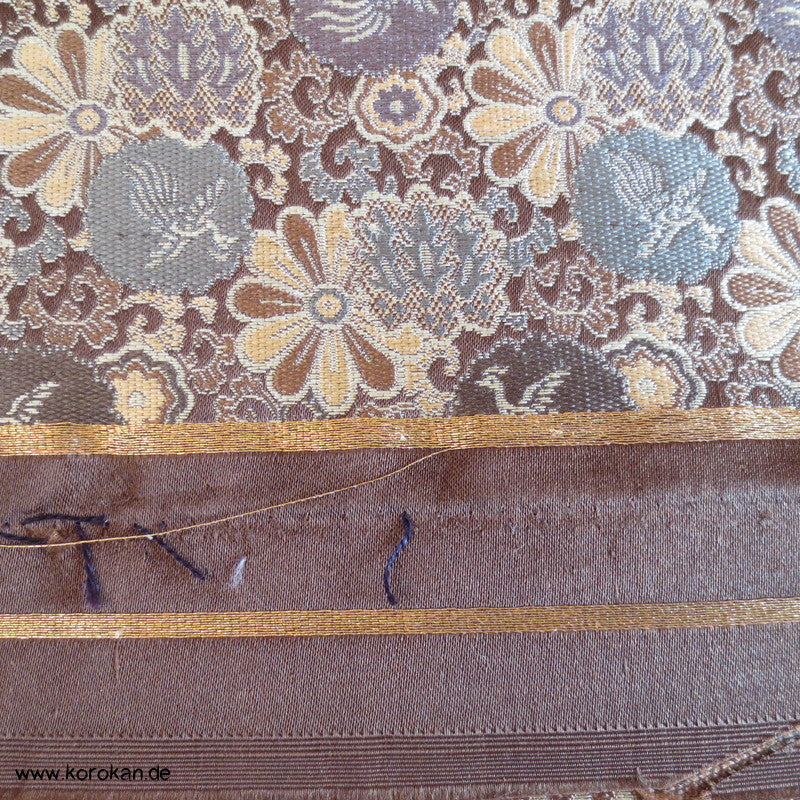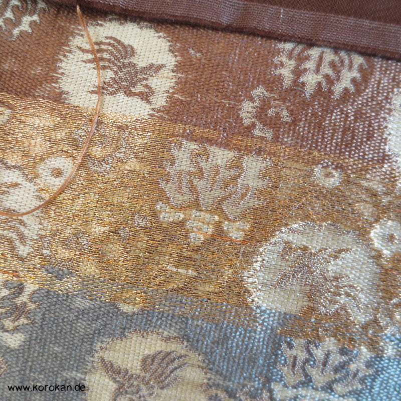 japanischer Araihari aufgetrennter antiker Obi - nur noch ein Stoffrest - ein Teil ist schon eine Schwerthülle geworden.