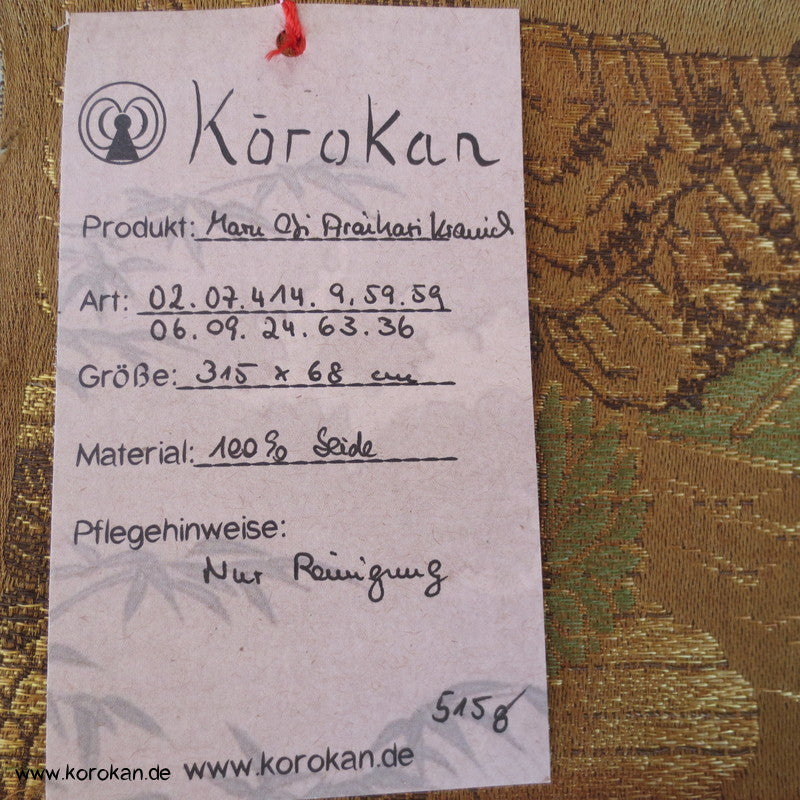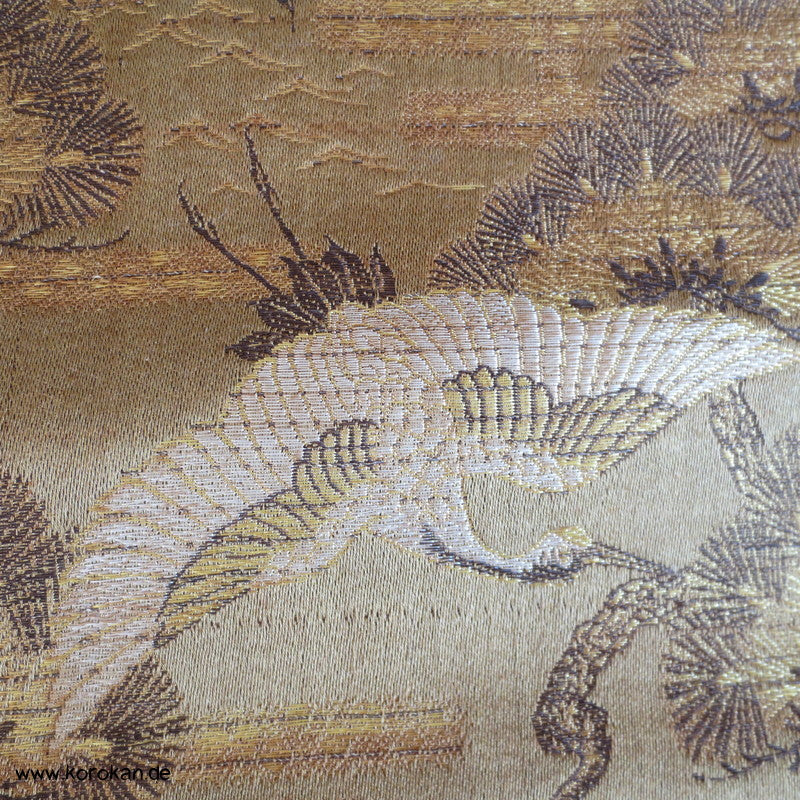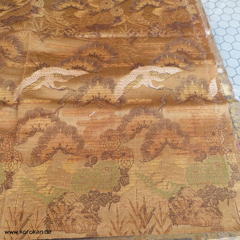 oliv / gold / schwarz Kraniche Araihari Stoff für Maru Obi