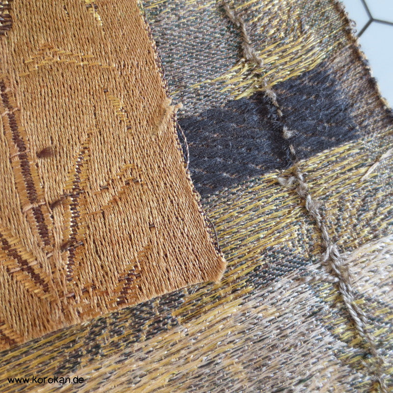 japanischer Araihari aufgetrennter antiker Obi - nur noch ein Stoffrest - ein Teil ist schon eine Schwerthülle geworden.