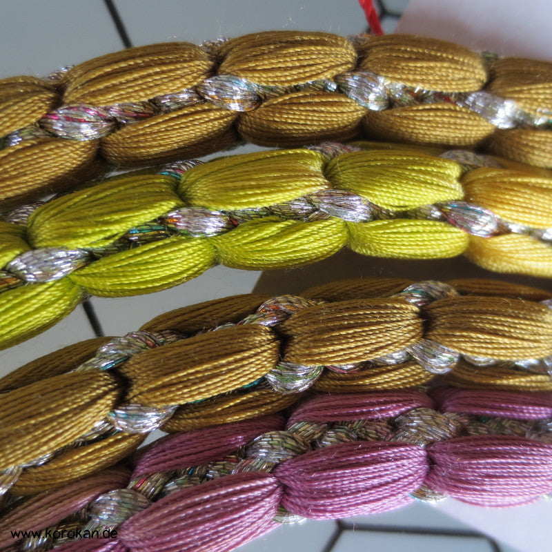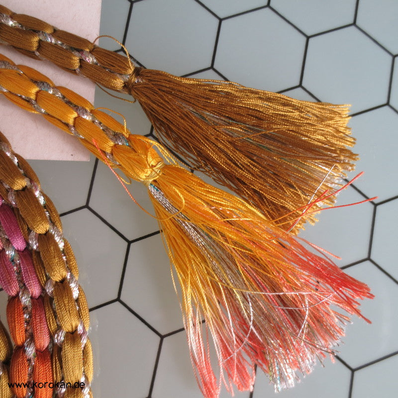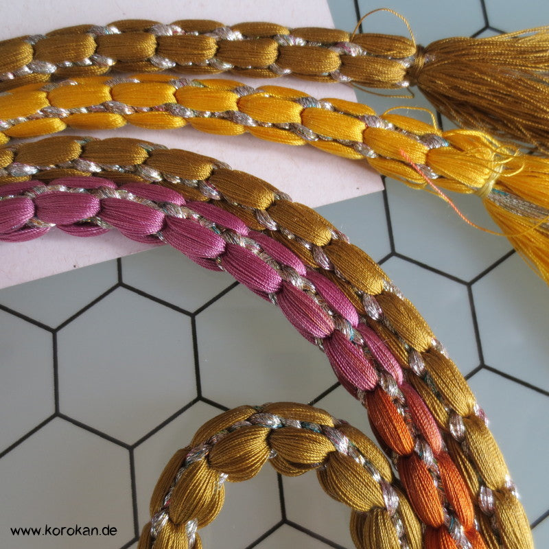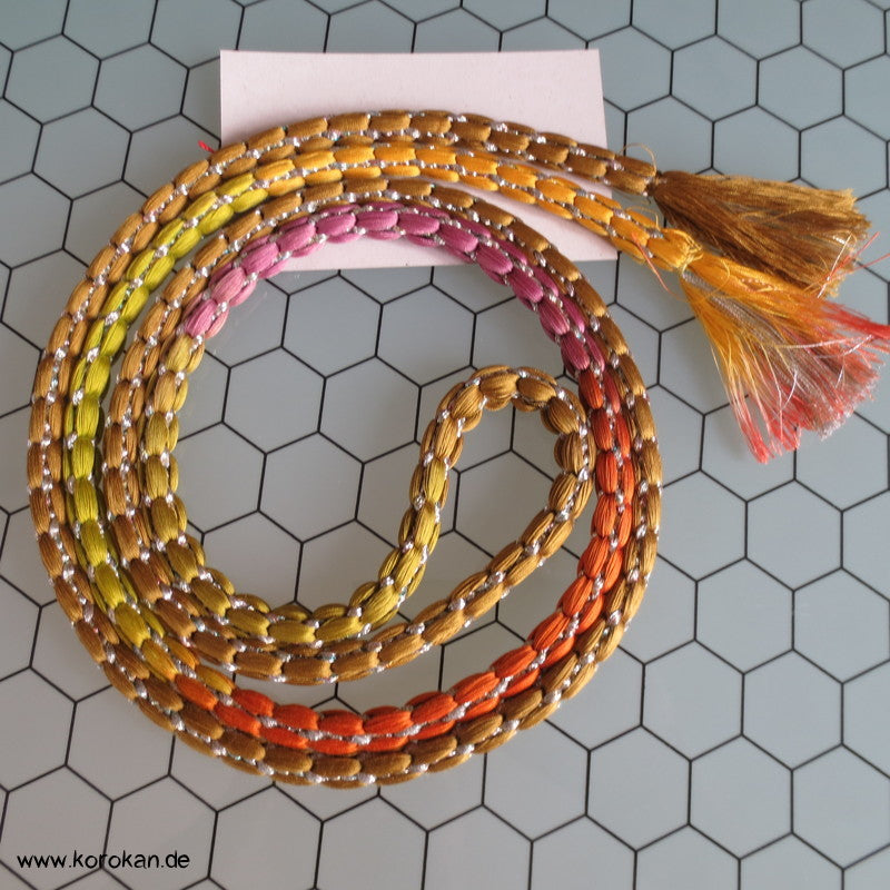 Vintage Seiden Kordel Obijime, oliv kupfer gold Farbverlauf, besondere Troddeln