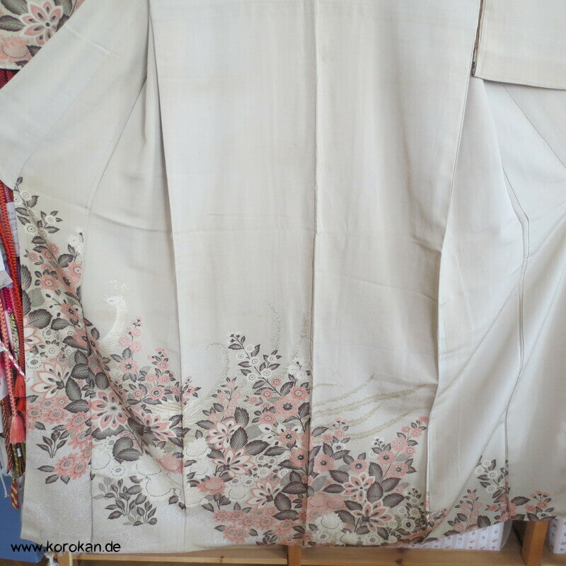 Omeshi Jacquard Pfau hinter Blumen Homongi Kimono