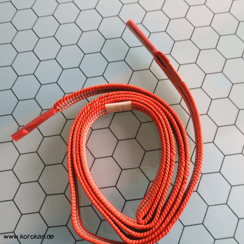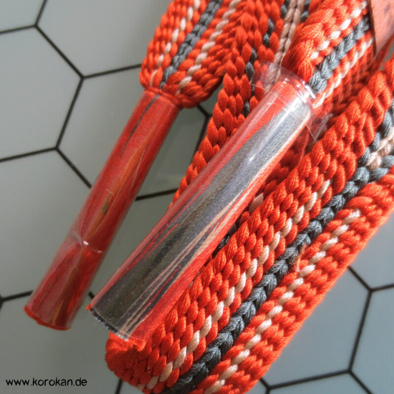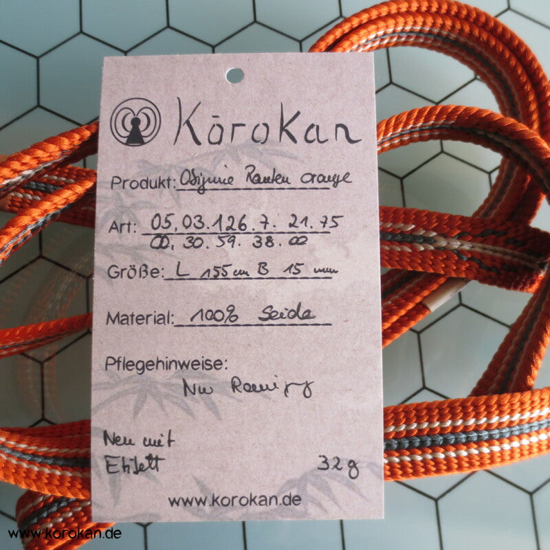 Vintage Seiden Kordel Obijime, bunte Streifen und Rauten in orange, neu mit Etiketten