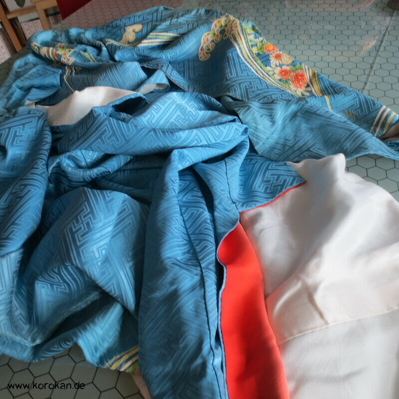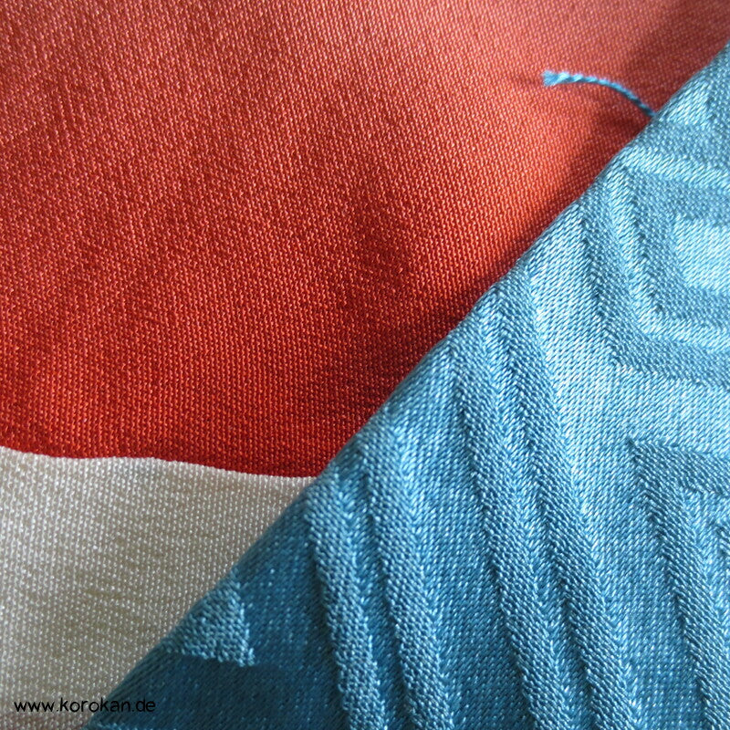 Oberes Futter helle Seide, unteres Hakkake Seidenfutter mit Bokashi Verlaufsfarbenrand
