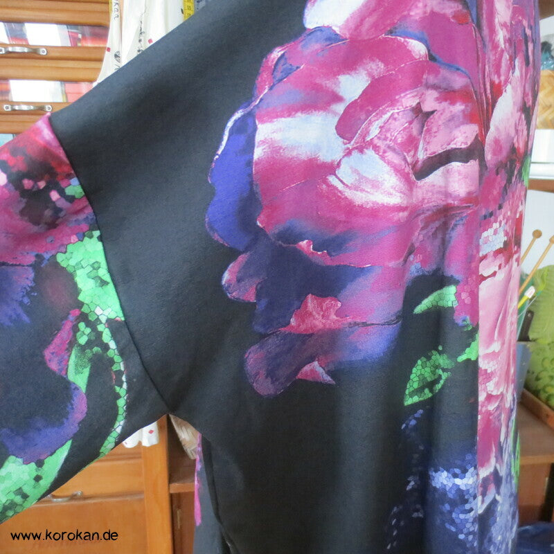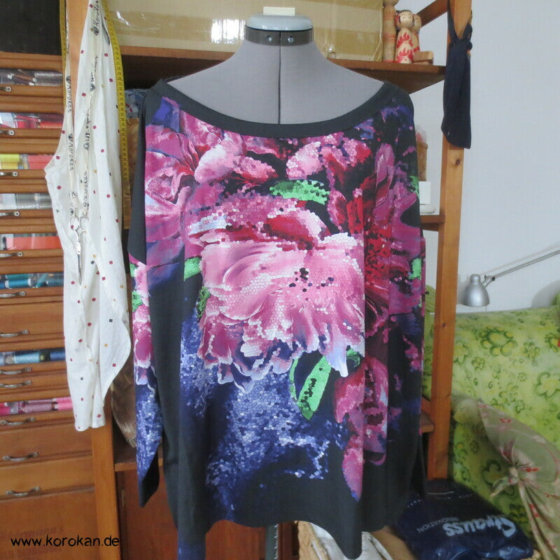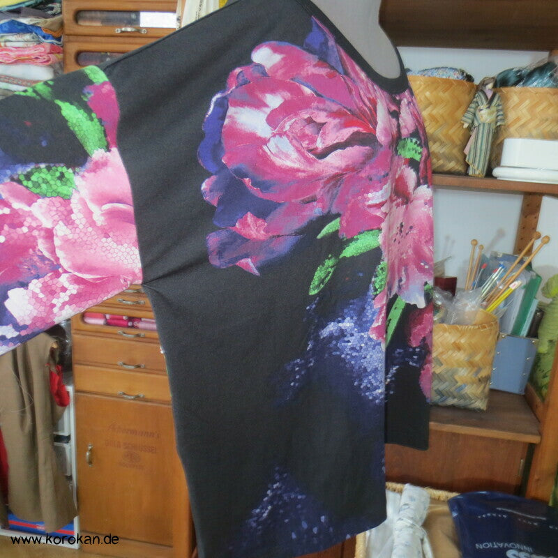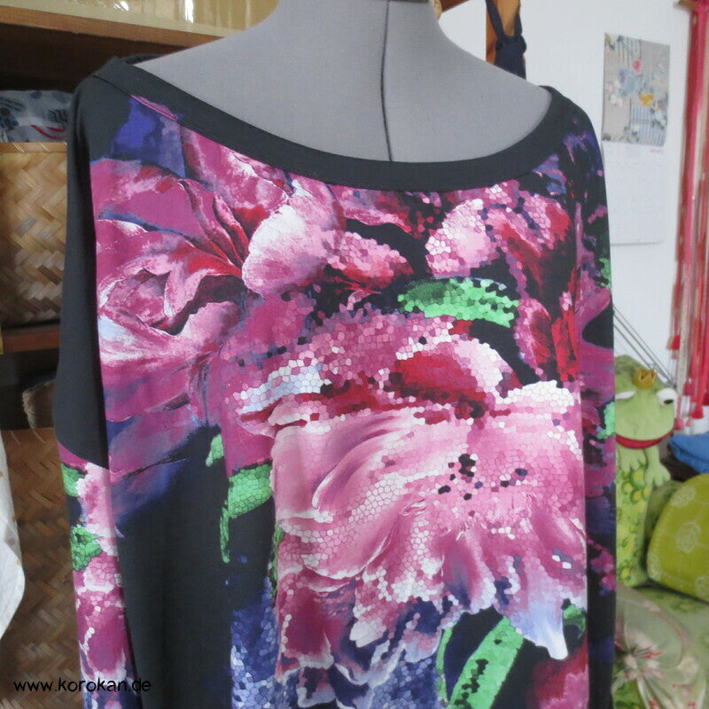 Viscosjersey mit Elasthan Langarm Shirt mit riesigem Päonien Pfingstrosendruck - ganz lose und Weit - auch gut über einem anderen Shirt zu tragen -