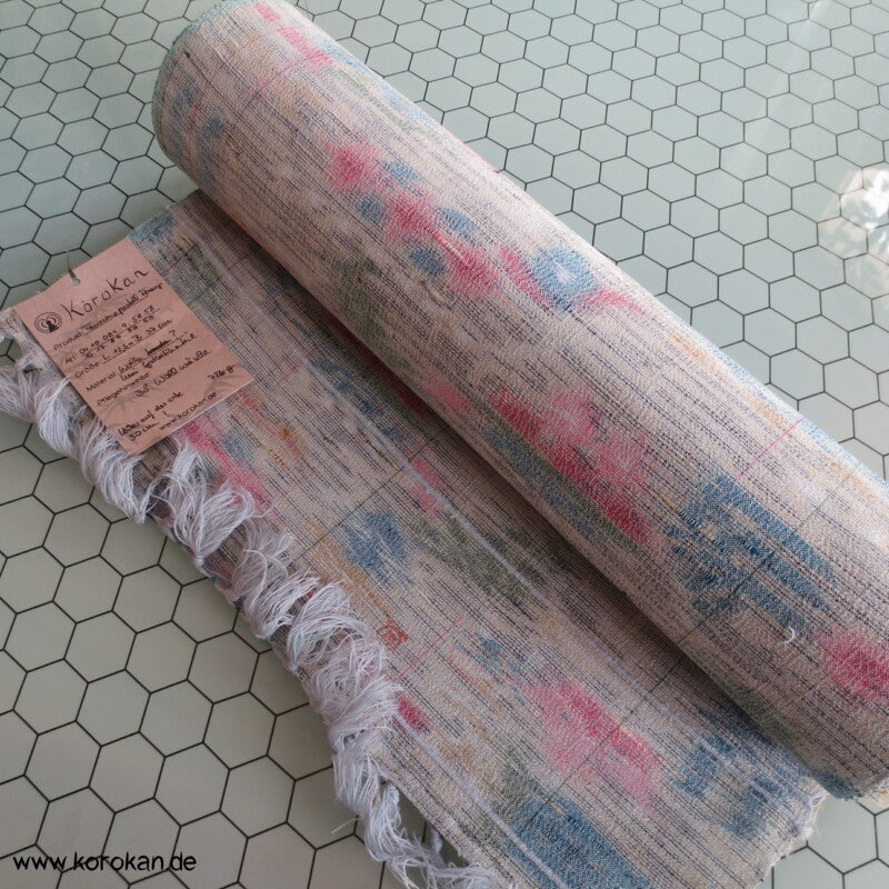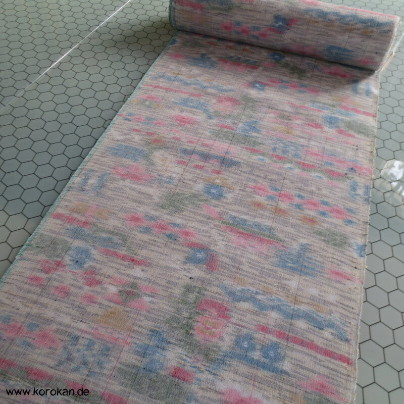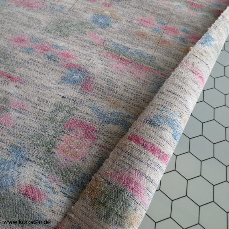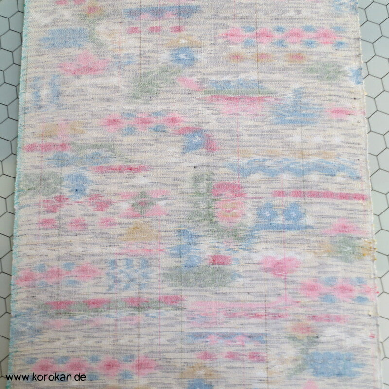 pastellbunte Blüten Kasuri handgewebter Woll Tsumugi