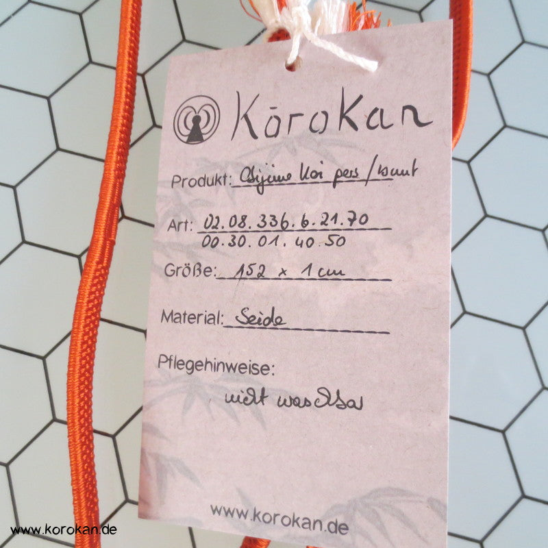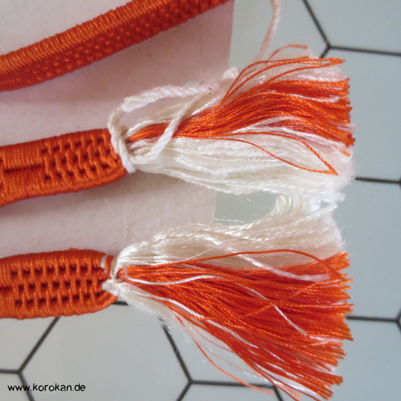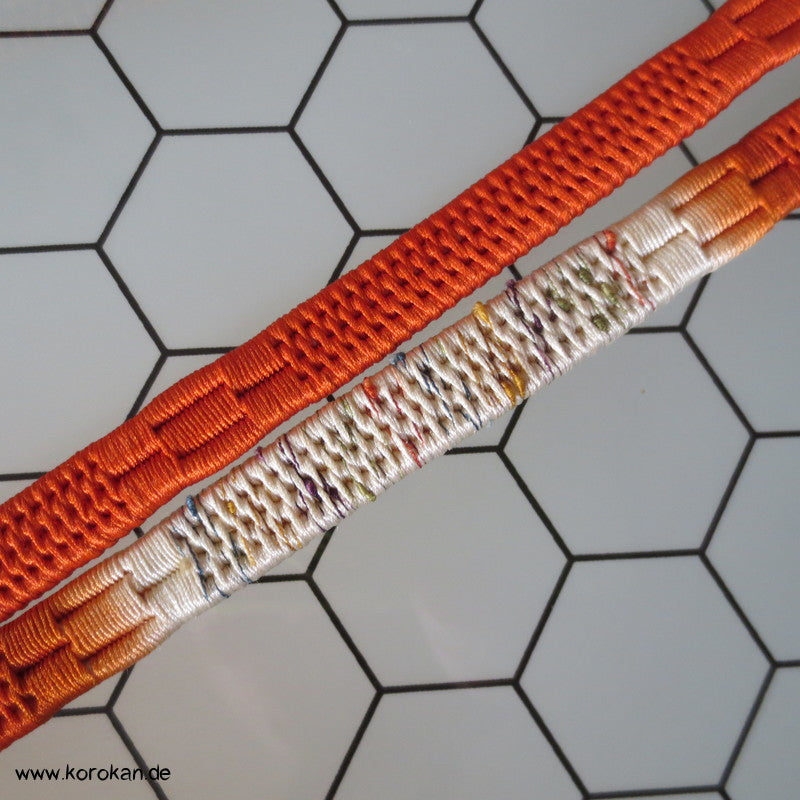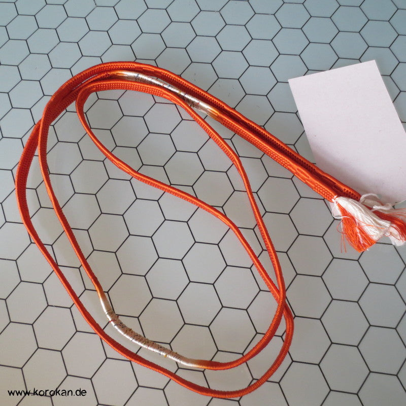 Vintage japanischer Flecht Seiden Obijime persimmon mit bunten Abschnitten