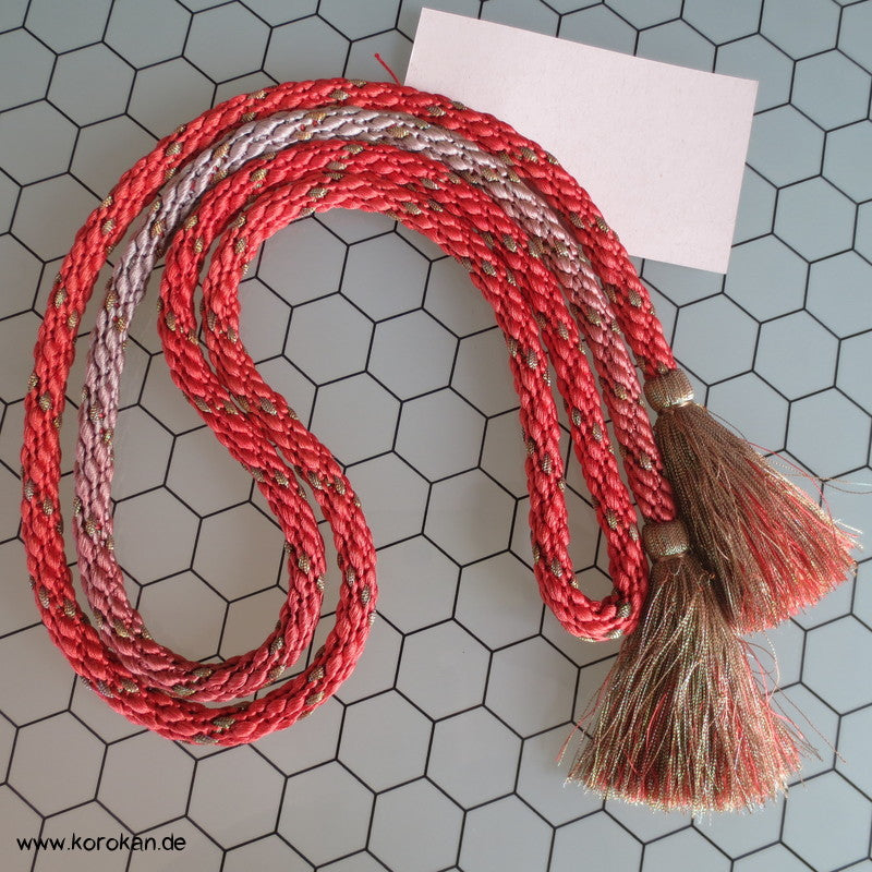 Vintage Seiden Kordel Obijime, persimmon gold blush Farbverlauf, besondere Troddeln