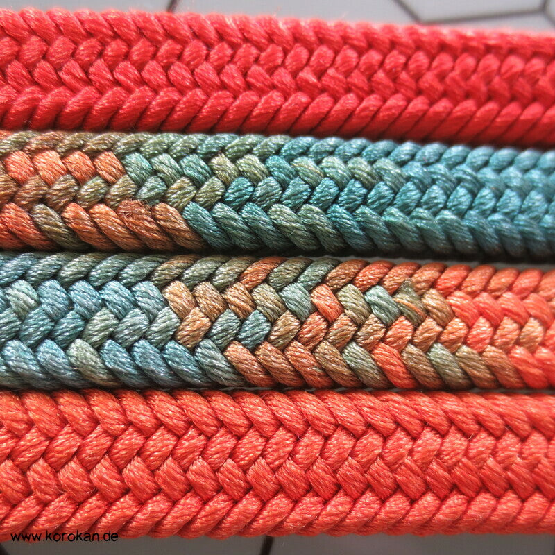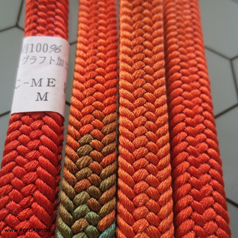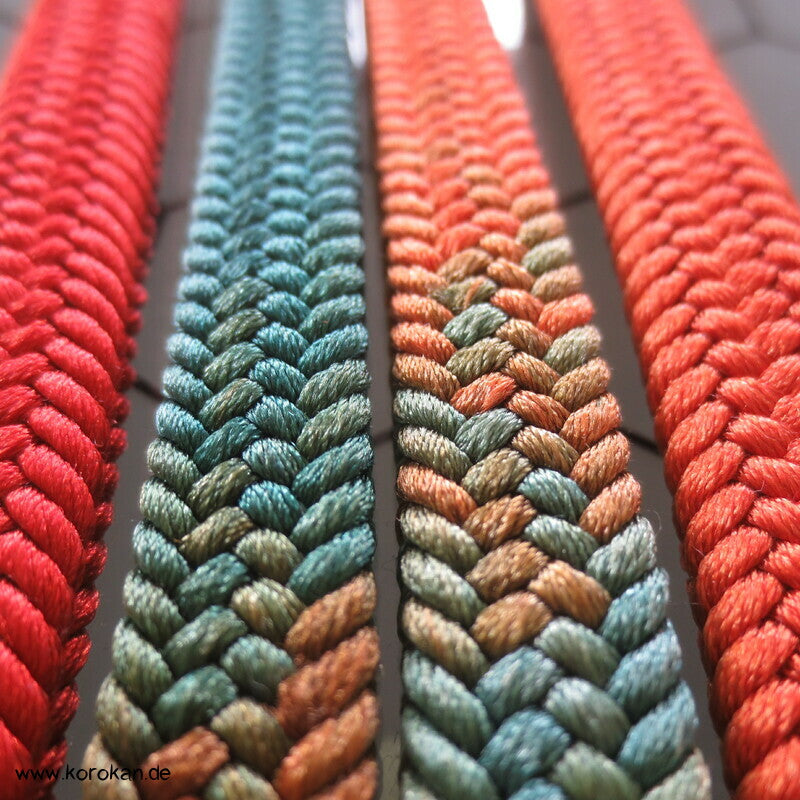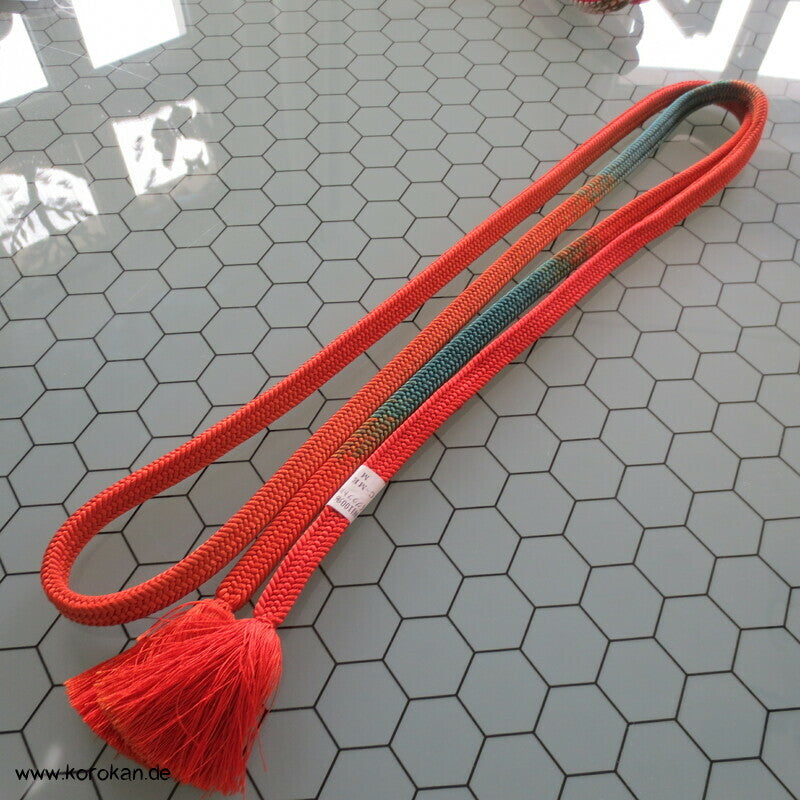 Vintage unbenutzer, neuer japanischer Flecht Seiden Obijime persimmon türkis Farbverlauf