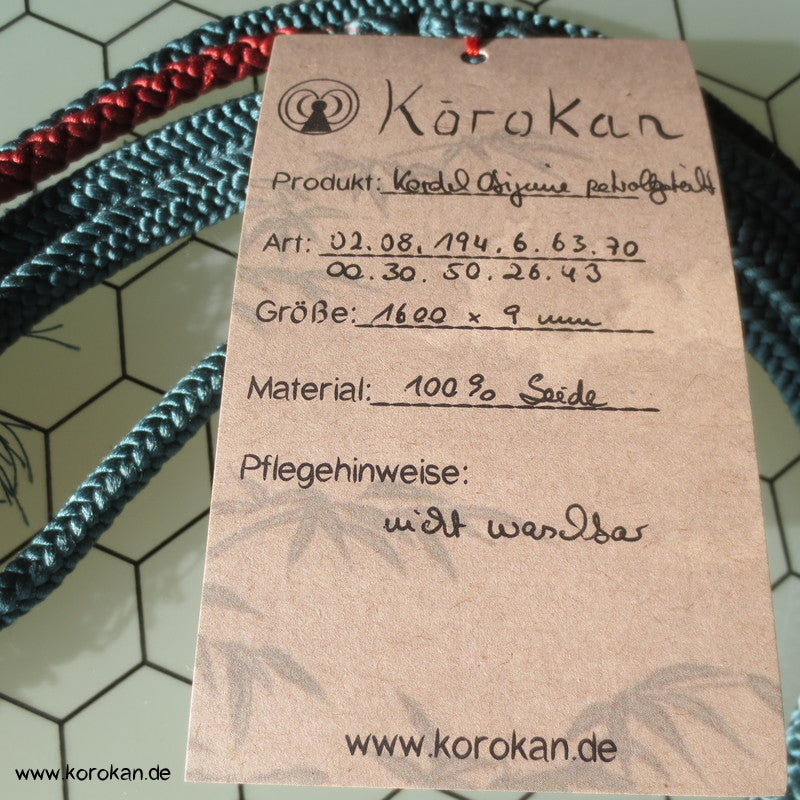 petrol - dunkelroter Kordel Obijime - mit Verdickungen