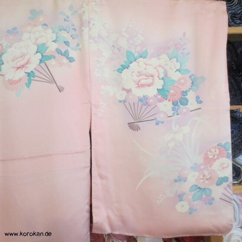 Pfingstrosen auf Fächern in rosa Seide Homongi Kimono
