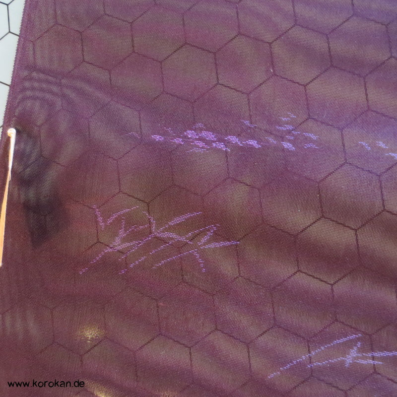 Vintage unbenutzte japanische Seide aubergine Rho Drehergewebe mit eingewebten Gräsern