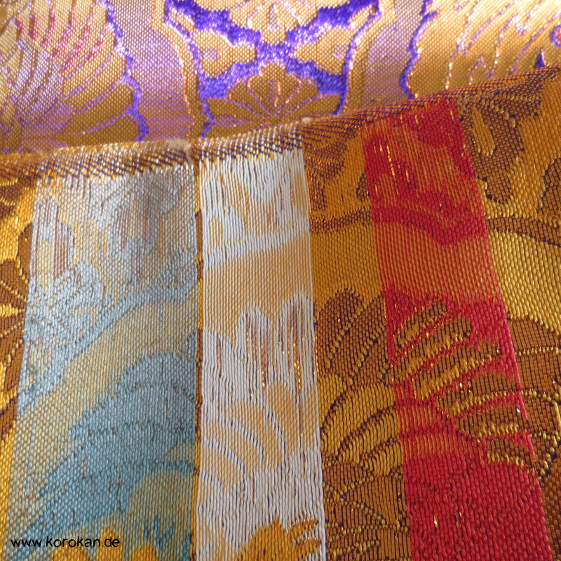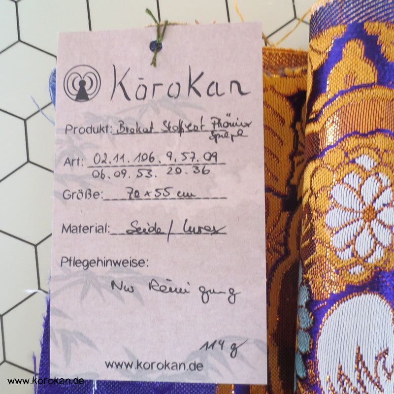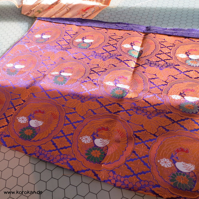 Vintage unbenutzer Seiden Brokat Rest Phönixrondelle auf Diamantrauten, wohl eher für Tempelzwecke als für Bekleidungszwecke gewebt