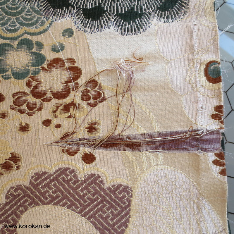 japanischer Araihari aufgetrennter antiker Obi - nur noch ein Stoffrest - ein Teil ist schon eine Schwerthülle geworden.