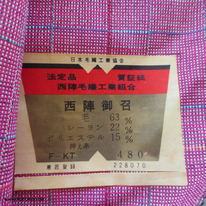 pink, buntes Überkaro handgewebtes Kimono Wollmischgewebe