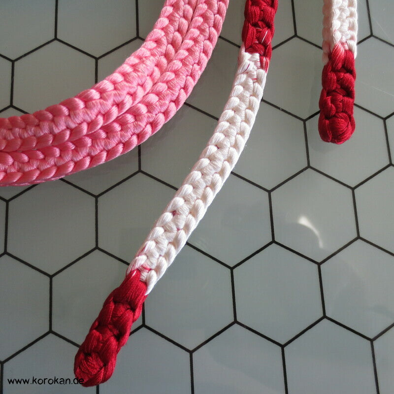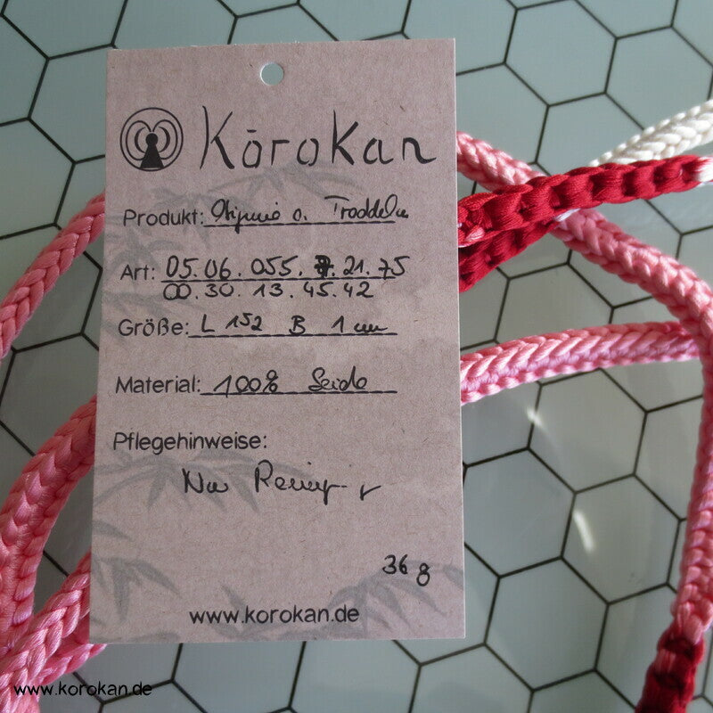 Vintage Seiden Kordel Obijime, pink rot natur Farbverlauf, Rechteck Querschnitt, ohne Troddeln mit runden Enden