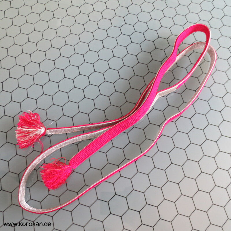 Vintage flacher Obijime Kiku pink silber Obijime, Seide / Lurex