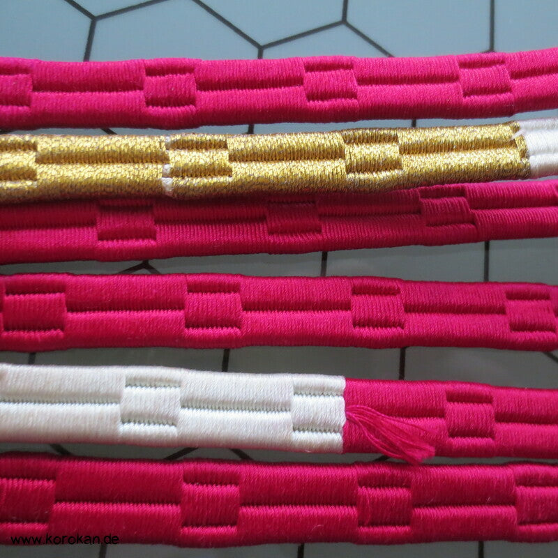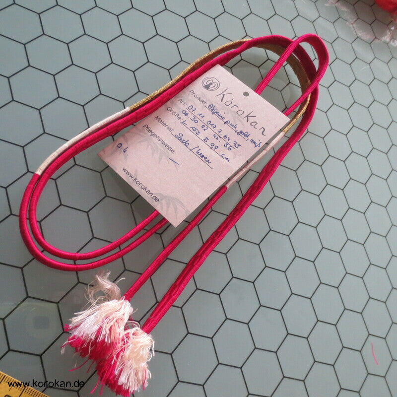 Vintage flacher Obijime pink, gold weiß in Abschnitten geflochten