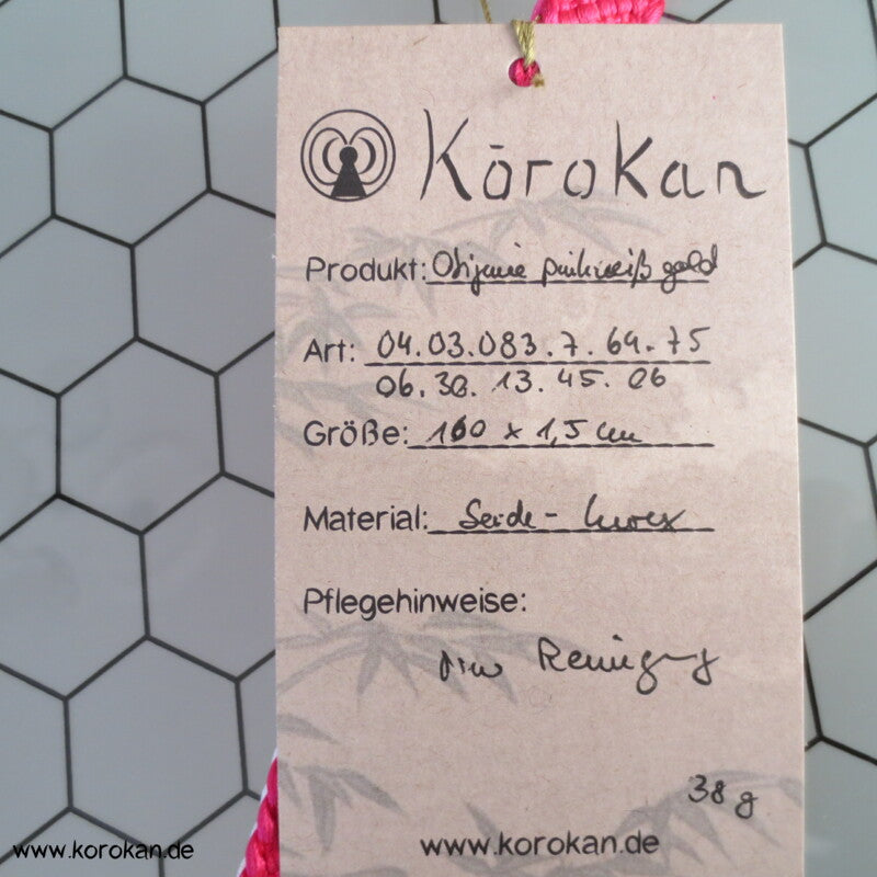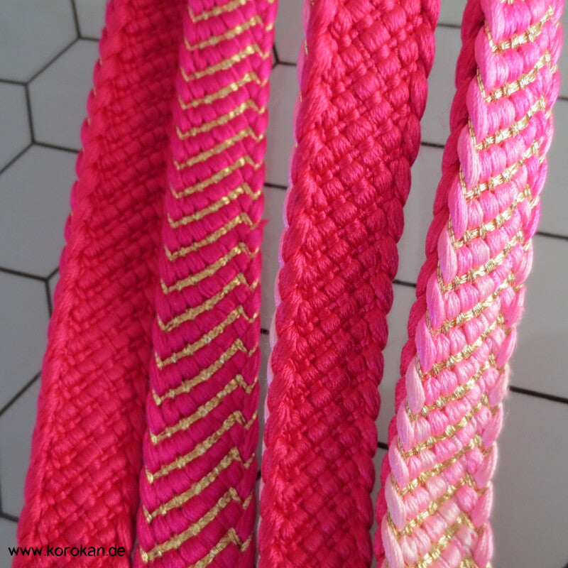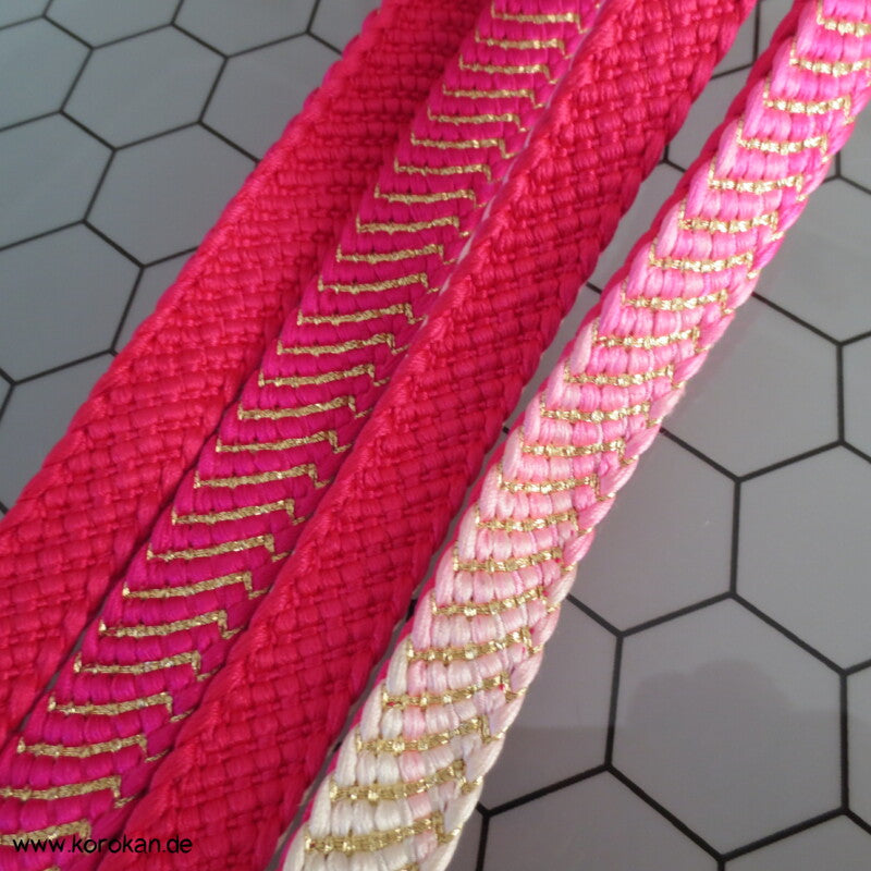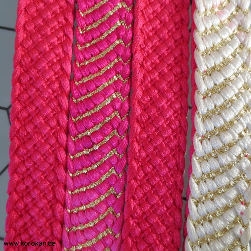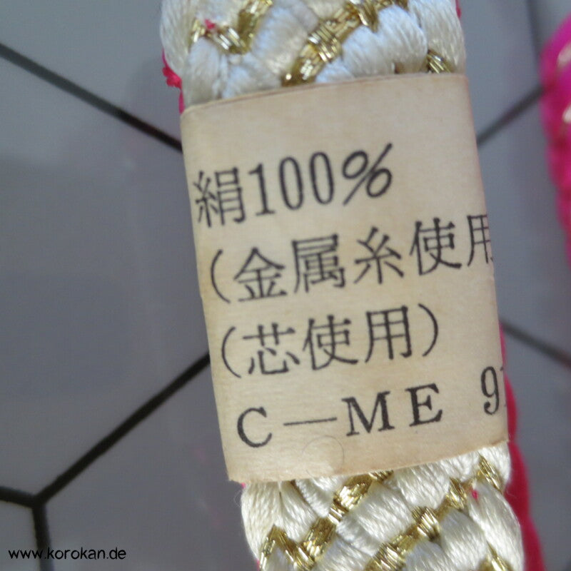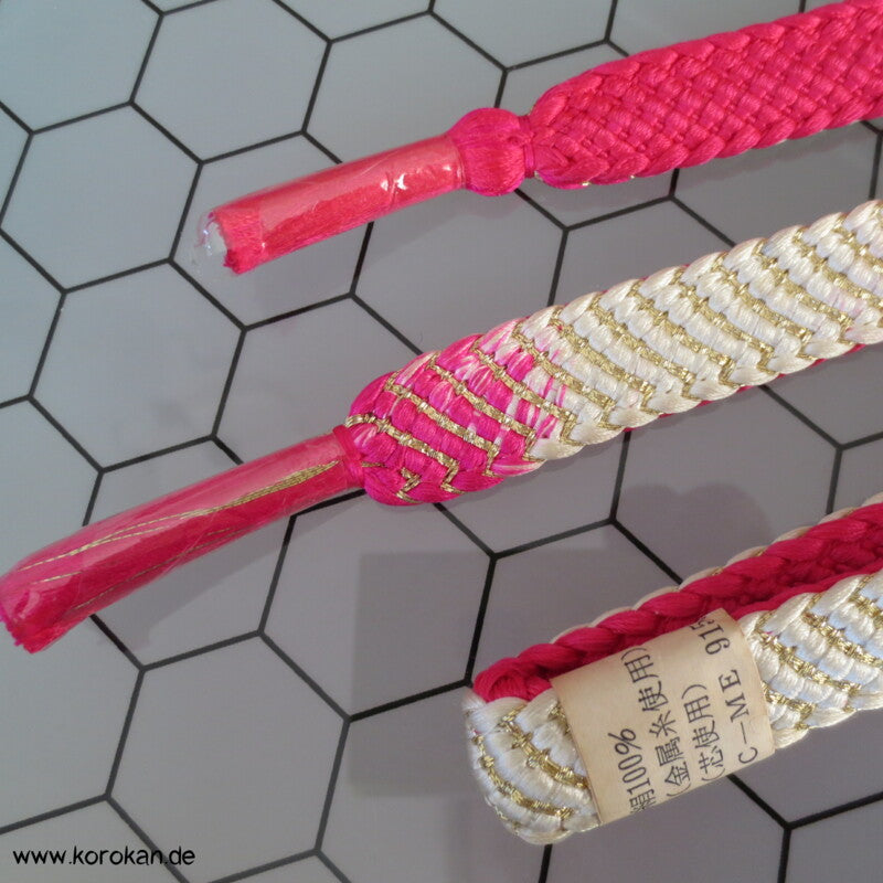 Vintage flacher Obijime pink, gold weiß in Abschnitten geflochten