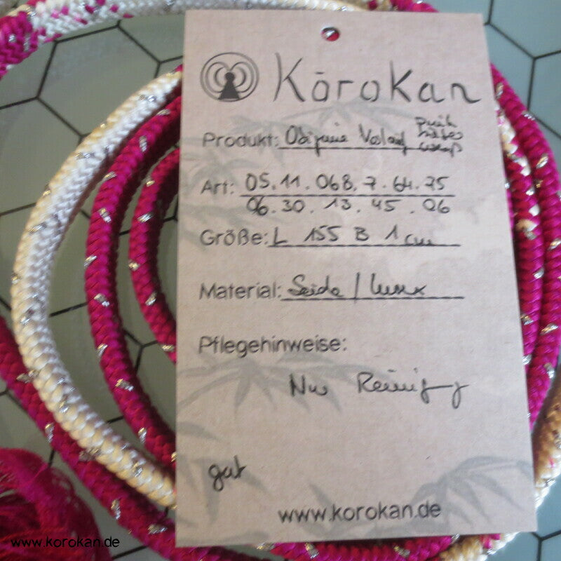Vintage flacher Obijime pink weiß silber Obijime, Seide / Lurex