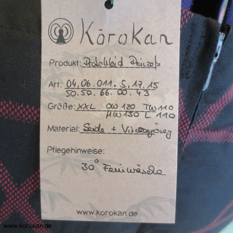 Gr. XXL, Oberweite 120 cm, Taille 110 cm, Hüfte 130 cm, Länge 110 cm.