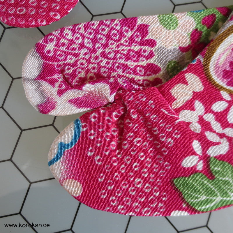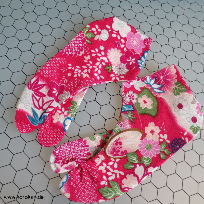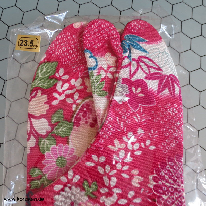 Vintage unbenutzte, originalverpackte Kimono Tabi Socken, mit Haken, Oberstoff Polyester Chirimen Crepe, Sohle und innen reine Baumwolle