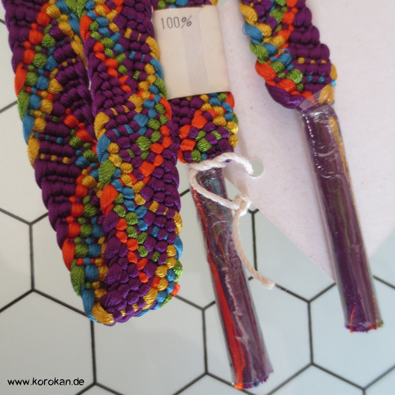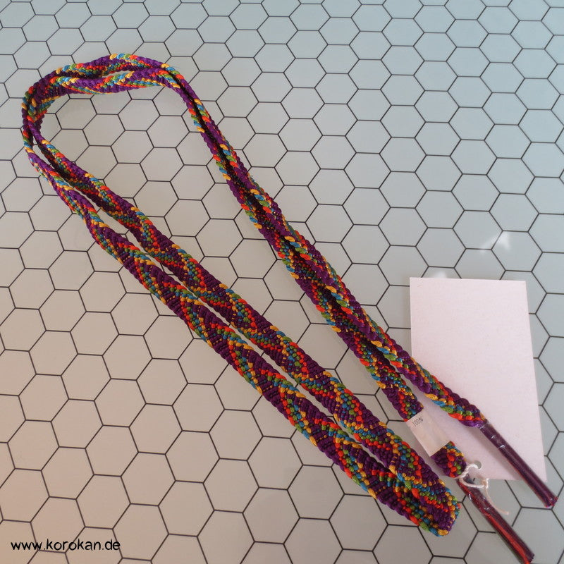 Vintage japanischer Flecht Seiden Obijime regenbogen Zick Zack in violett geflochten