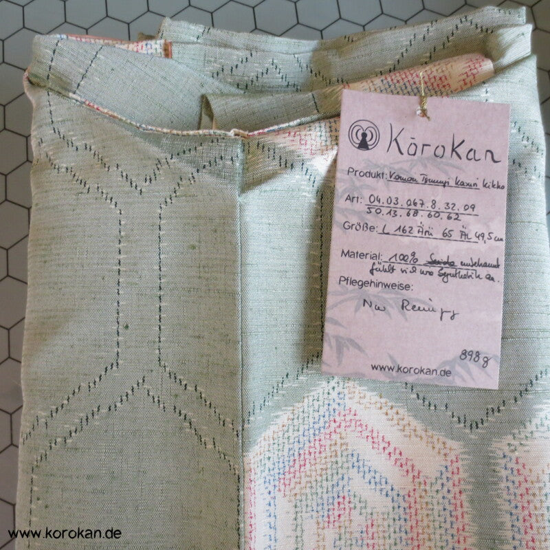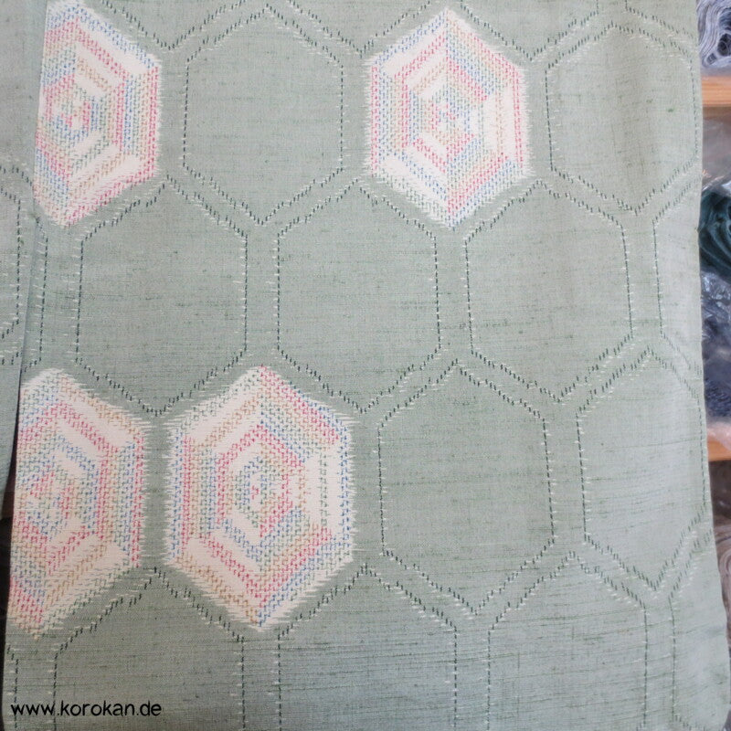 regenbogen Kikko in seladon Kasuri Tsumugi Seiden Kimono