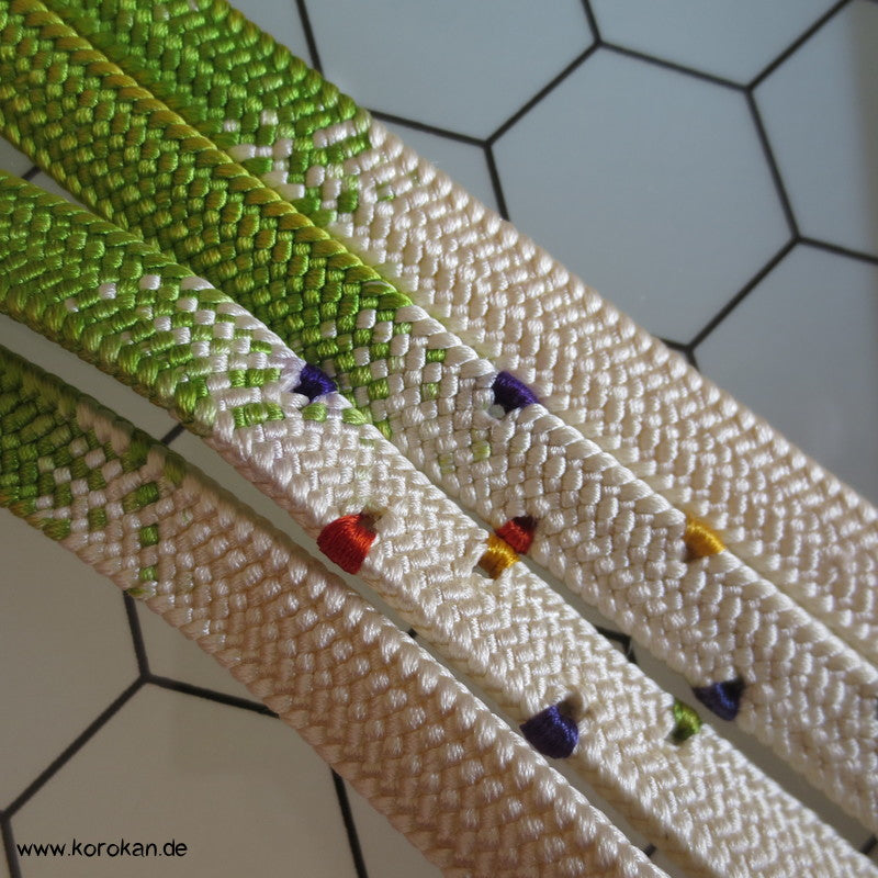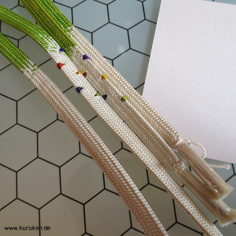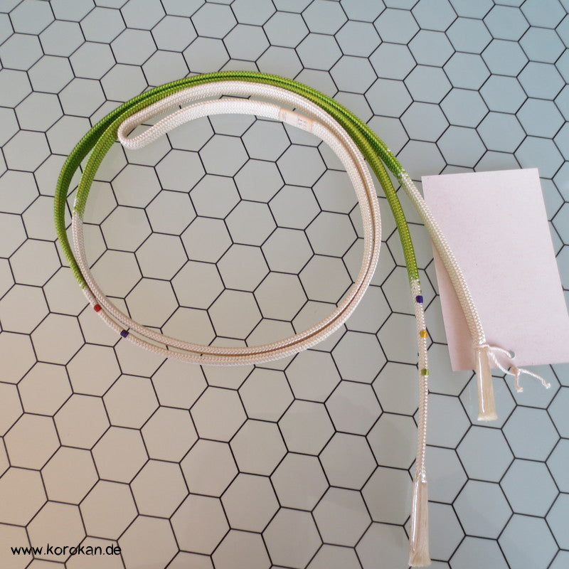 regenbogen Punkte auf weiß - grün Obijime, geflochten